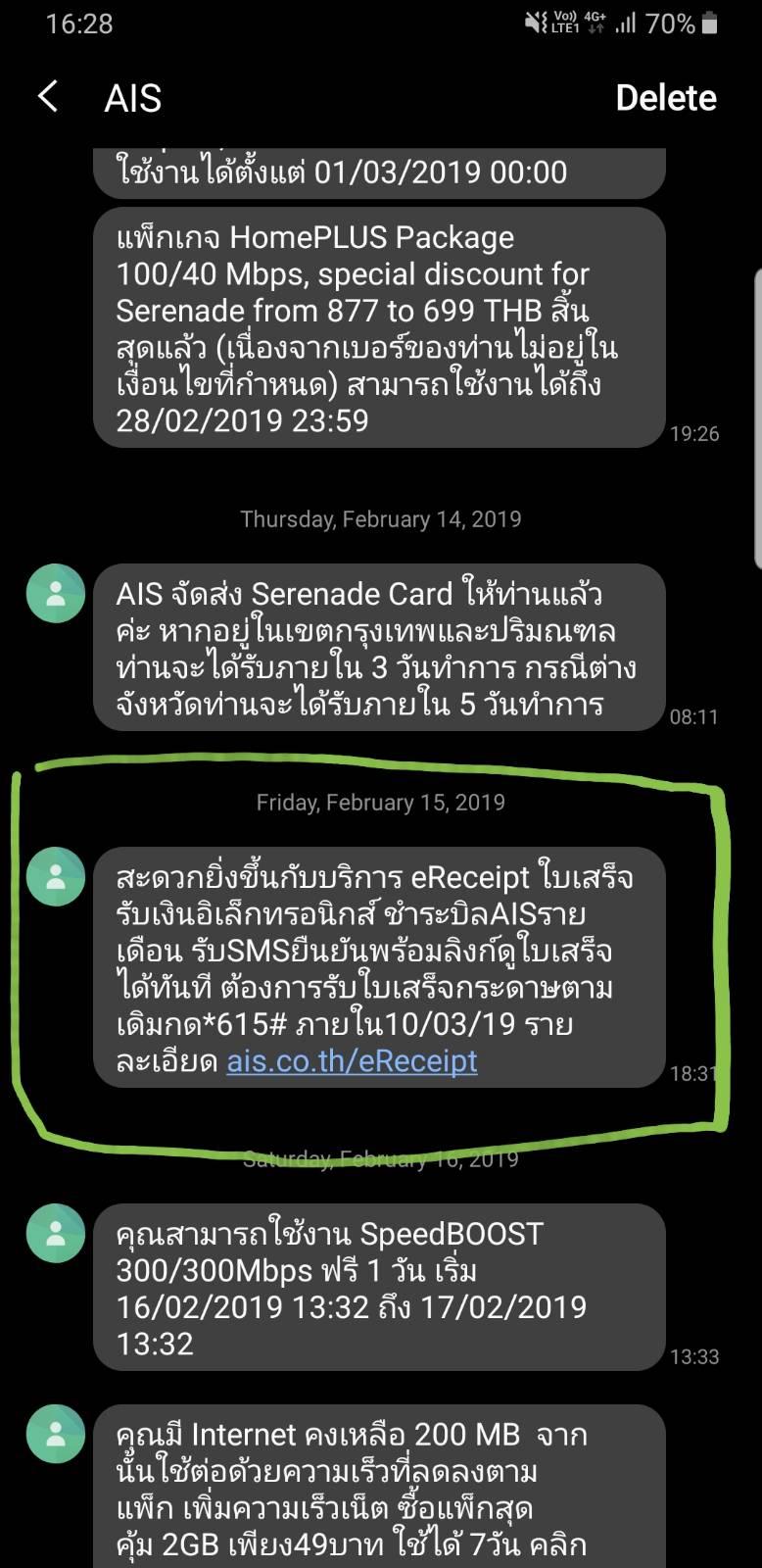 สวัสดีครับอยากสอบถามCC AIS เกี่ยวกับเรื่องข้อความ SMS ที่ได้รับตั้งเเต่วันศุกร์ครับ ตามภาพที่วงไว้แต่เพิ่งมาว่างถามวันนี้ครับ เกี่ยวกับ บิล ซึ่งผมอ่านผมก็ยังไม่เครียร์ว่า คือ จะเปลี่ยนจากบิลแบบกระดาษเป็นแบบเเจ้ง SMS บิลเเทน แบบอัตโนมัติใช่ไหมครับ จนกว่าจะกดยกเลิกตามหมายเลขที่เเจ้งใน SMS ใช่ไหมครับ เเล้วอันนี้จะต่างจาก eBill เเค่ส่งบิลทาง SMS ใช่ไหมครับ ขอบคุณครับ