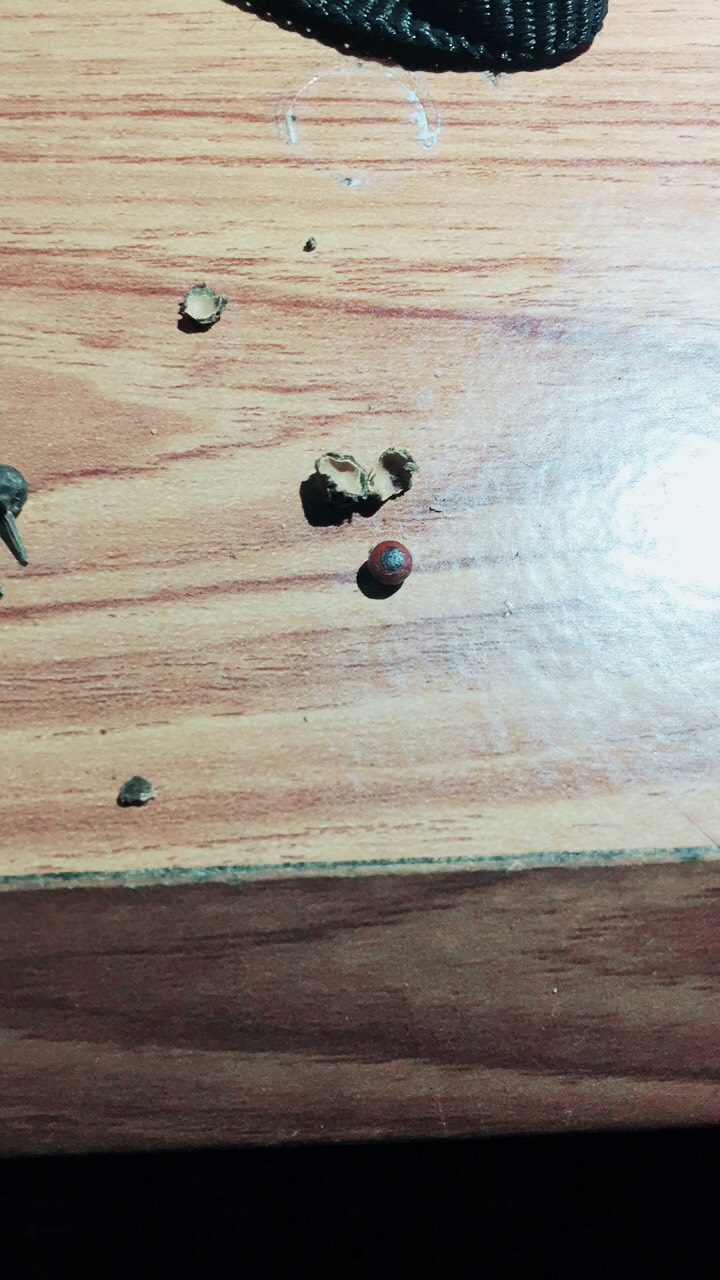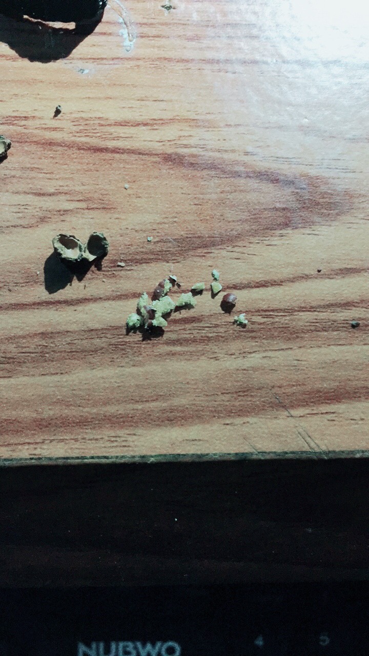 และพอบีบเม็ดสีแดงข้างในให้แตก ขอบอกว่ามันแข็งใช้ได้เลยครับ พอแตกก็จะเป็นแบบนี้ครับ เนื้อมันคล้ายๆถั่วเหลืองครับ