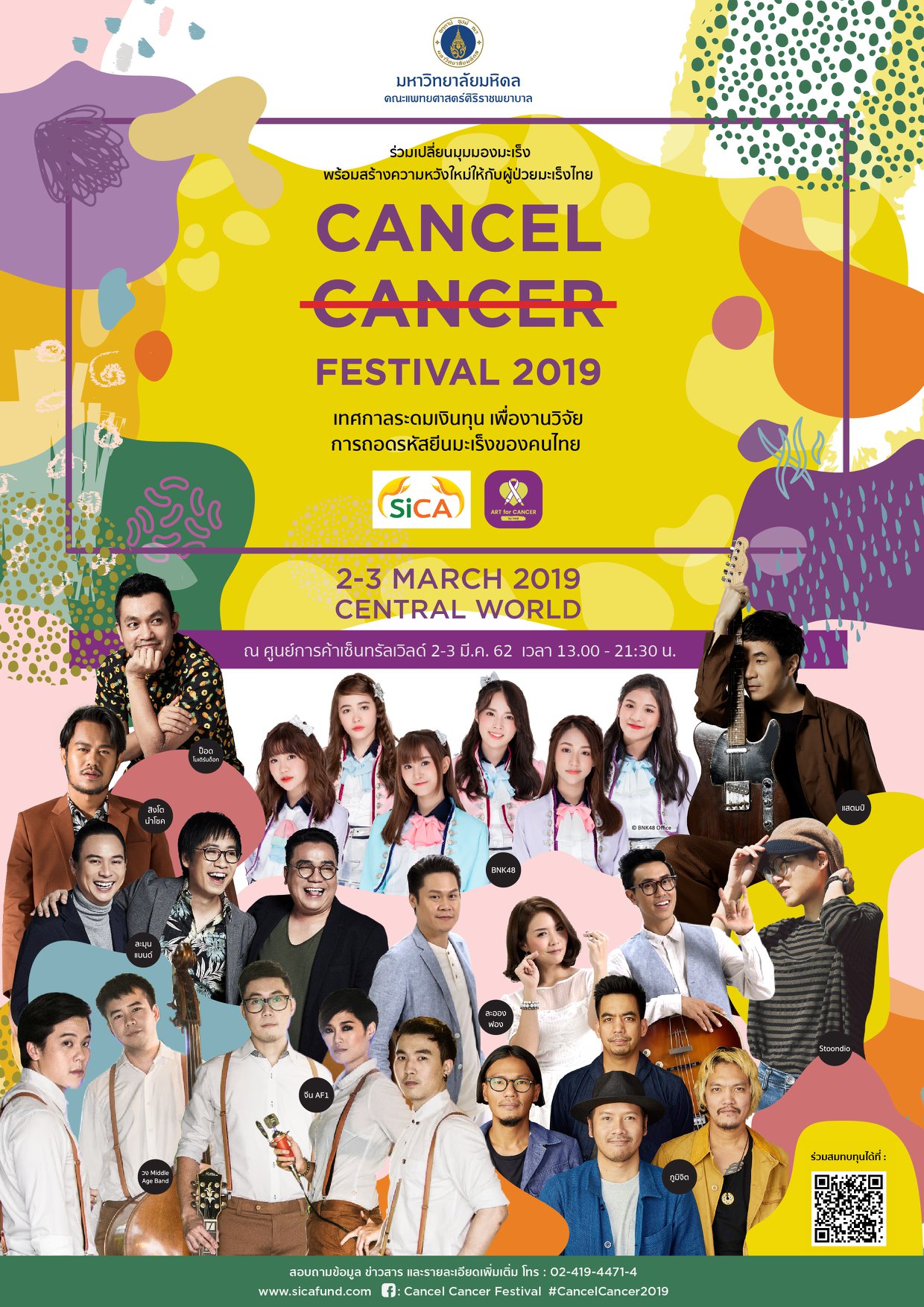 พบกับฟรีคอนเสิร์ตเพื่อ "ระดมเงินทุนงานวิจัยการแพทย์แม่นยำในโรคมะเร็ง" F/B https://www.facebook.com/cancelcancerfestival/