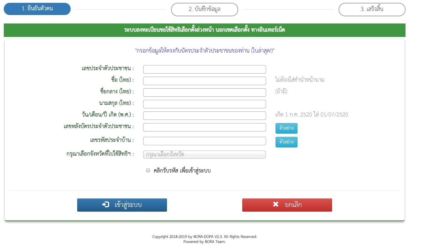 ลงทะเบียนเลือกตั้งล่วงหน้า 2562