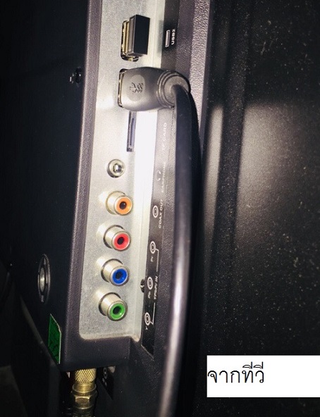 - เลยคิดว่าน่าจะต้องเสียบสาย COAX (รูสีส้ม) แต่ประเด็นคือฝั่งลำโพงมันเสียบได้แต่สาย rca เท่านั้น