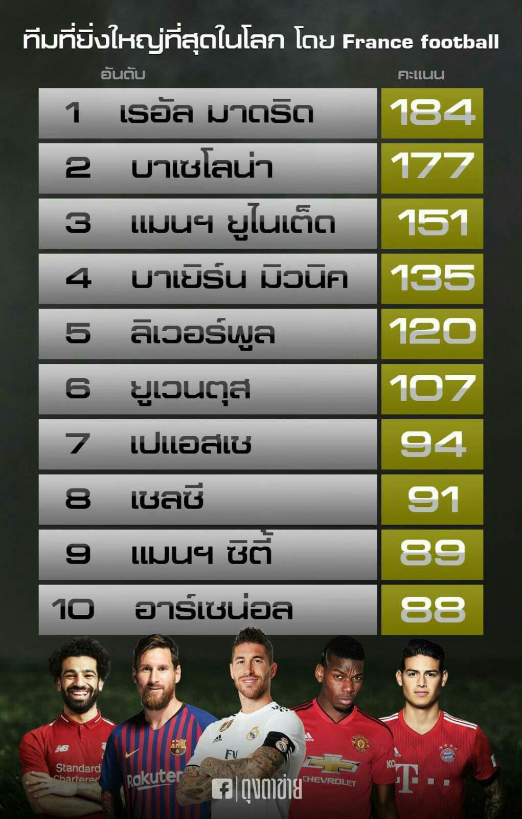 นิตยสาร France football จัดอันดับทีมที่ยิ่งใหญ่ที่สุดในโลก