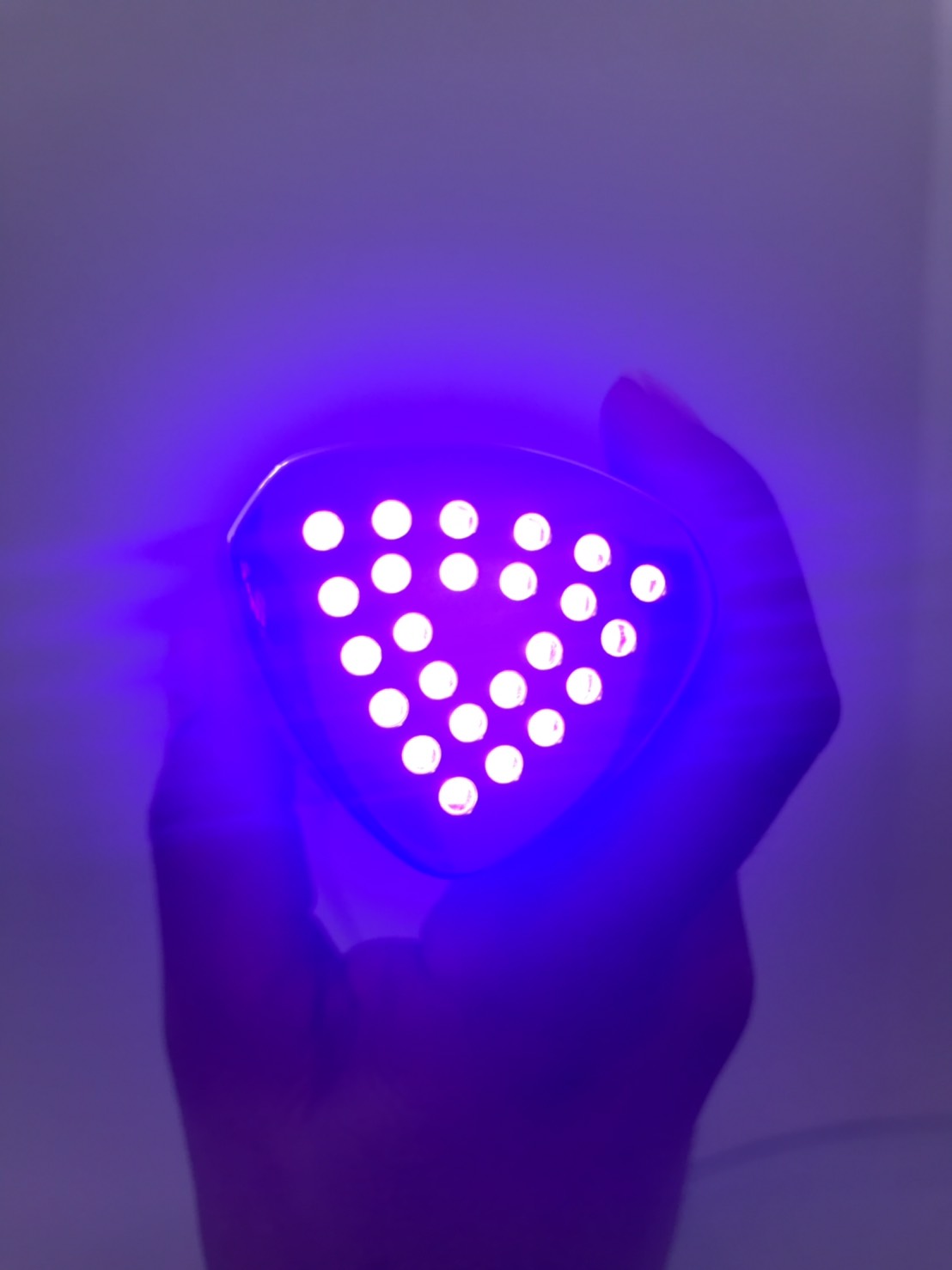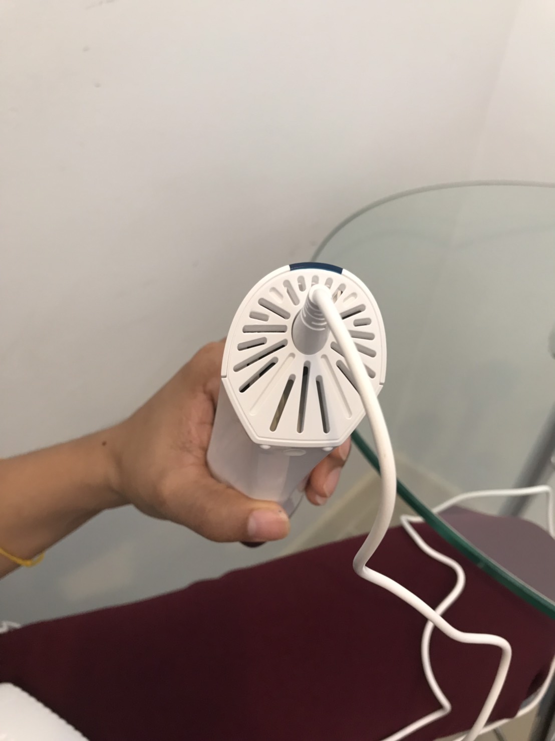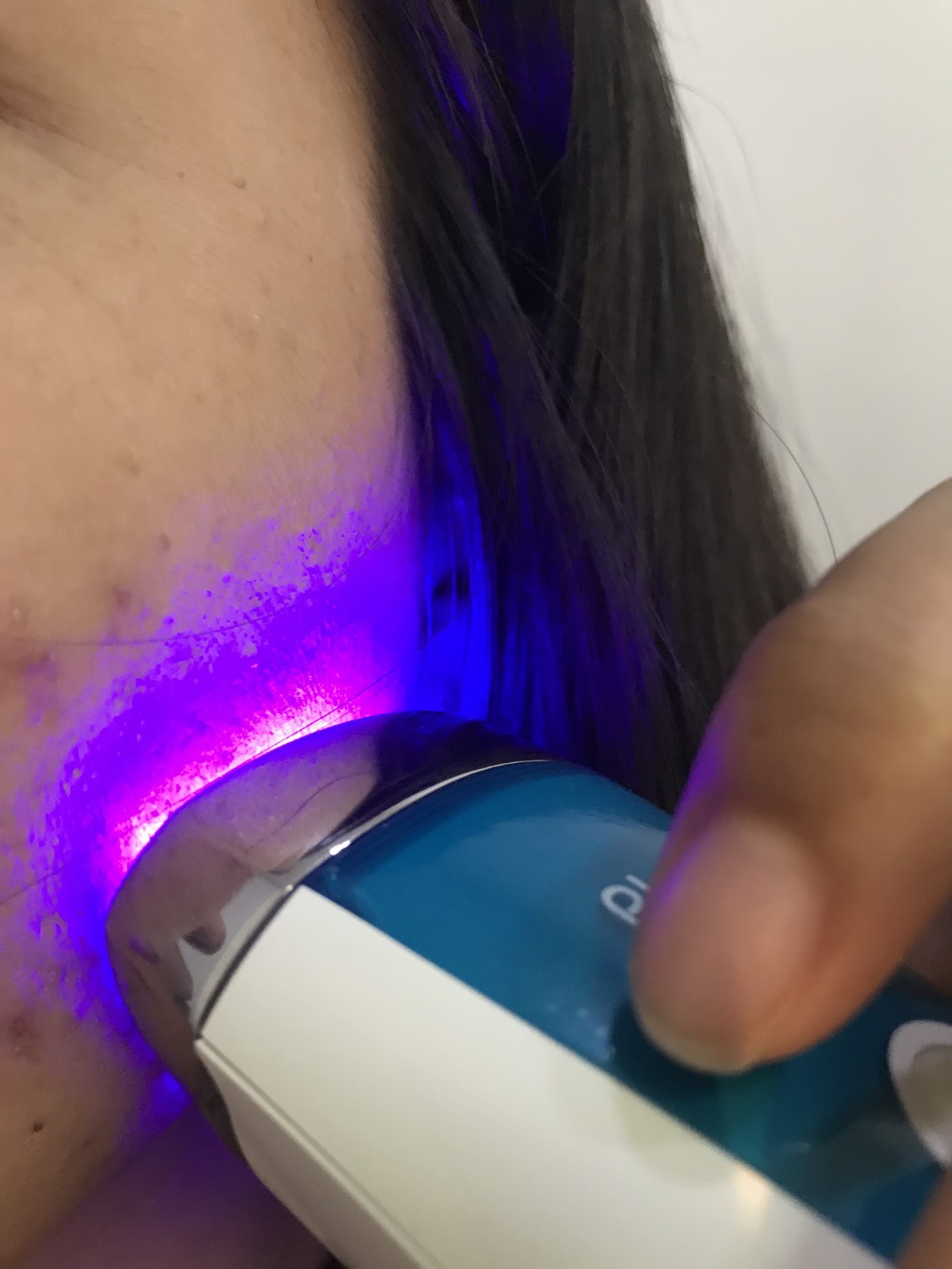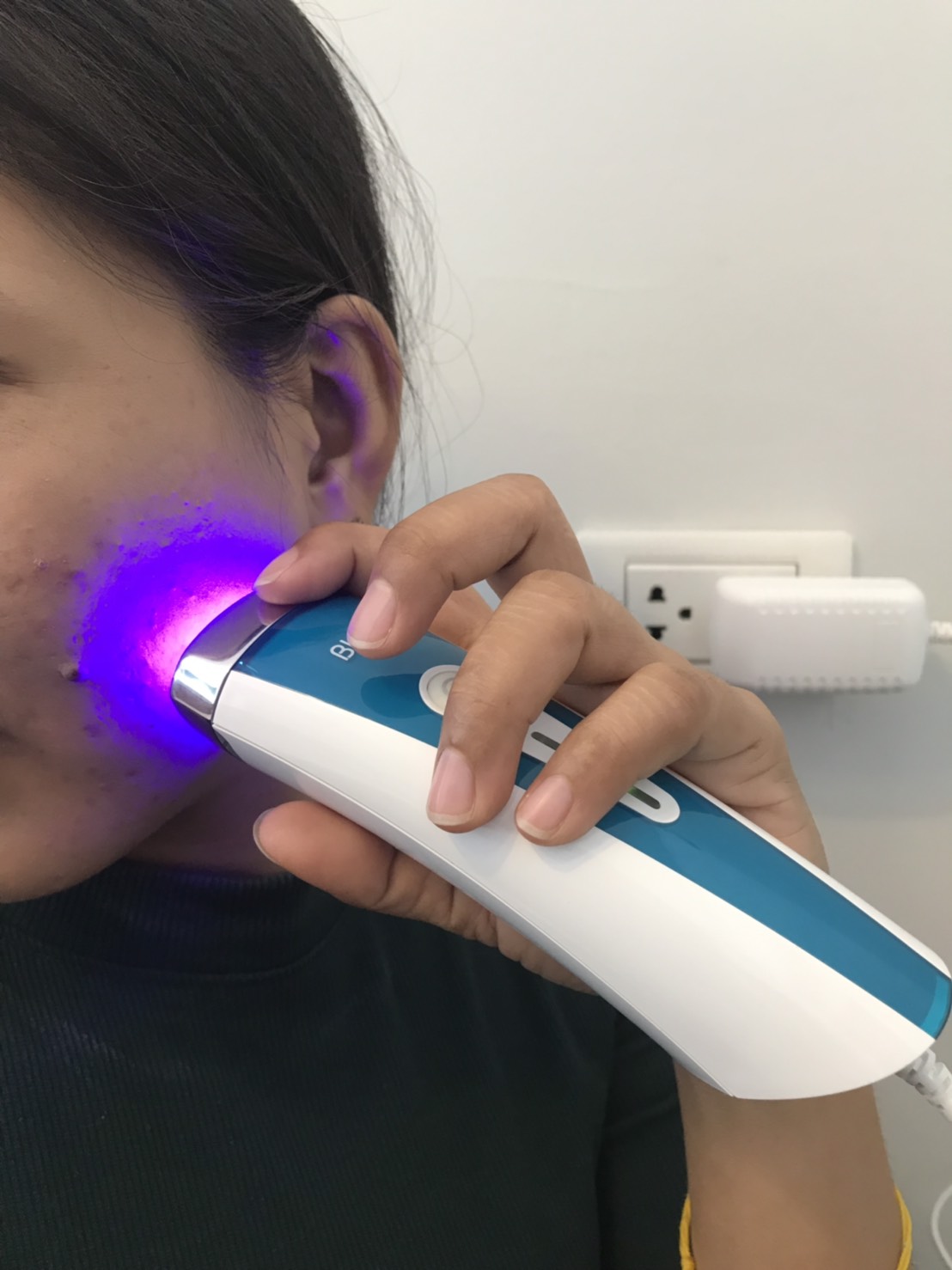 ตอนแรกก็ยังไม่แน่ใจนะ เพราะไม่เคยรักษาสิวด้วยวิธีนี้ แต่ไหนๆ ละ ลองมาหมดแล้วนี่ ตัดสินใจสั่งซื้อเลยจ้า คือปลื้มปริมมาก อย่างแรกเลยใช้งานง่ายมาก ตัวเครื่องจับถนัดมือ สะดวกสุดๆ ใช้ที่ไหน ตอนไหนก็ได้ ขอแค่มีปลั๊กเสียบ พอเสียบปลั๊กเสร็จ ไฟสีส้มก็จะขึ้นที่เครื่อง พอกดปุ่มเปิด แถบสีที่เครื่องจะมีสีเขียวขึ้นค่ะ แต่เราใช้ตอนเย็น อาบน้ำก่อนนอน ล้างหน้าให้สะอาด เช็ดให้แห้ง ไม่ต้องทาอะไรเลยแล้วใช้เครื่องทาบกับผิว เครื่องก็ปล่อยแสงสีฟ้าขึ้นเองอัตโนมัติและความรู้สึกอุ่นๆ แบบรับได้ ทาบไว้จุดละ 3-4 นาที แล้วก็ขยับไปเรื่อยๆ ให้ทั่วที่เป็นสิว แค่นี้เองง่ายมาก ตัวเครื่องจะมีเสียงพัดลมเบาๆ น่าจะเป็นการระบายอากาศความร้อน และที่ปลอดภัยคือ พอเอาเครื่องออกจากผิว แสงก็จะหยุดทำงานอัตโนมัติ เริ่ดที่สุด
