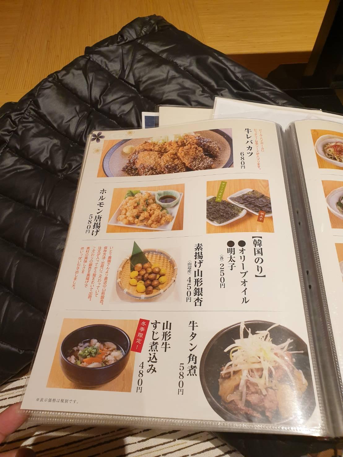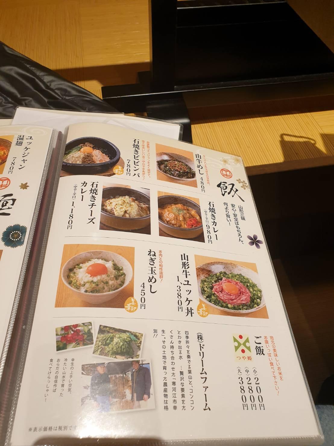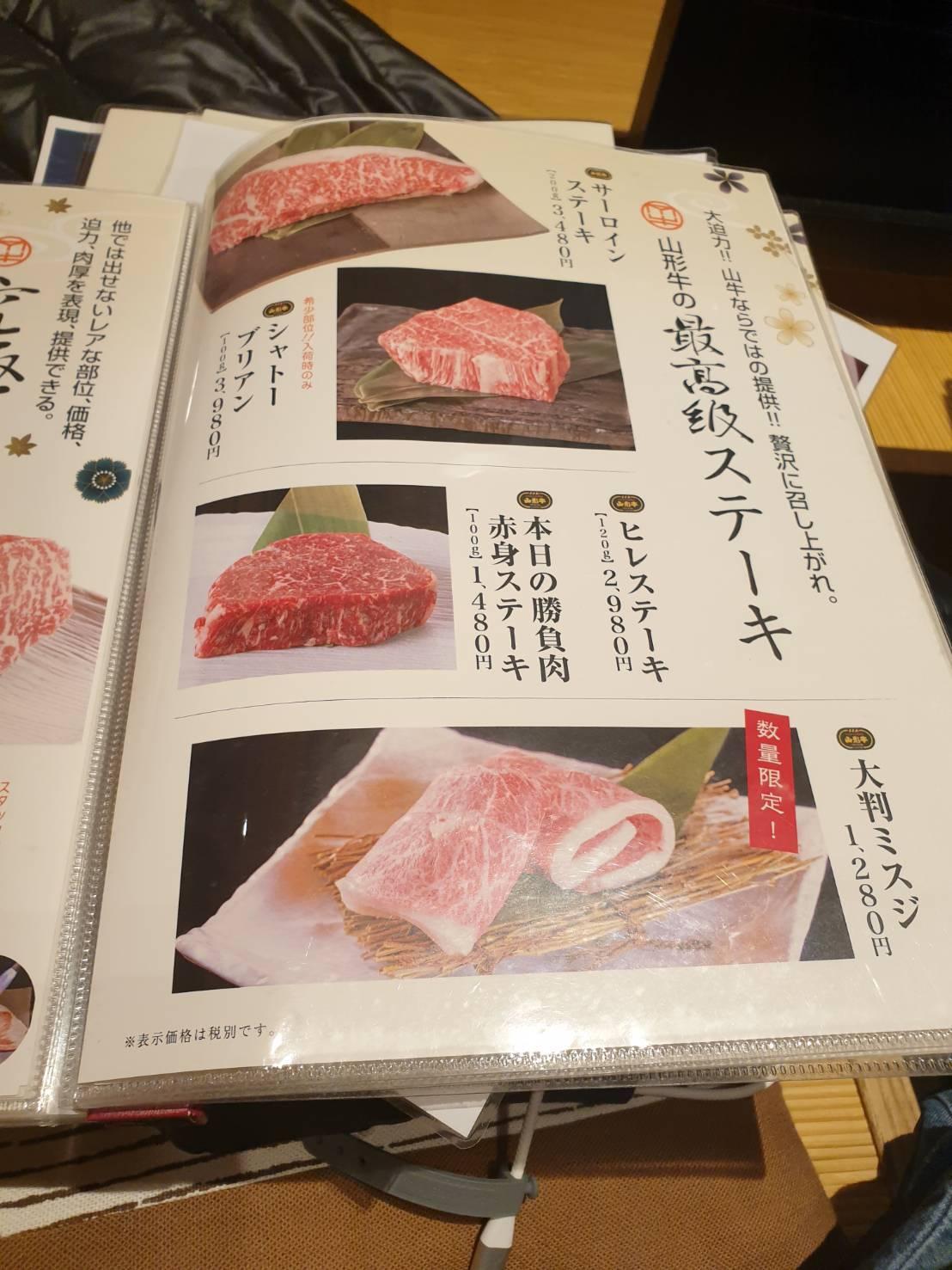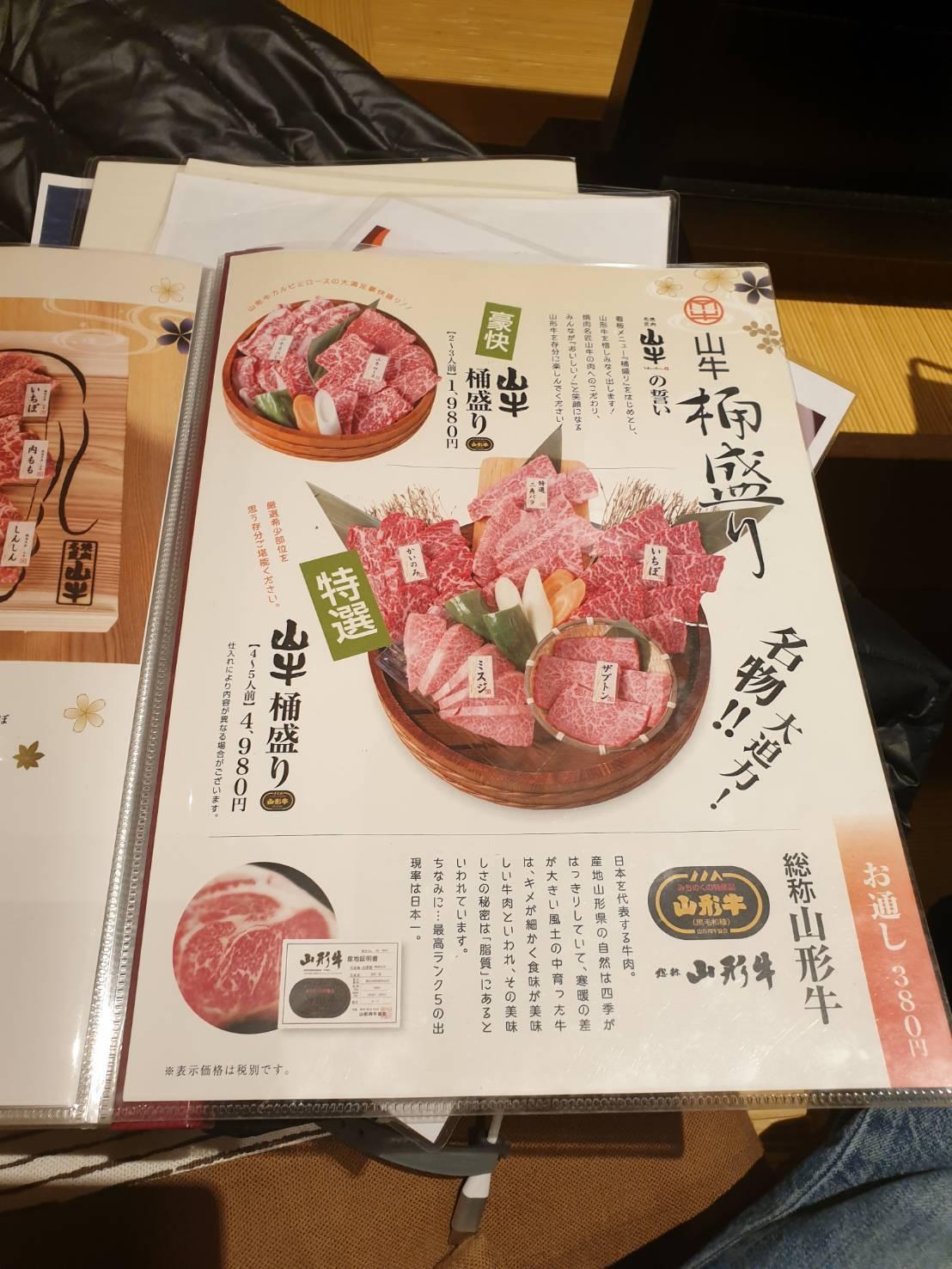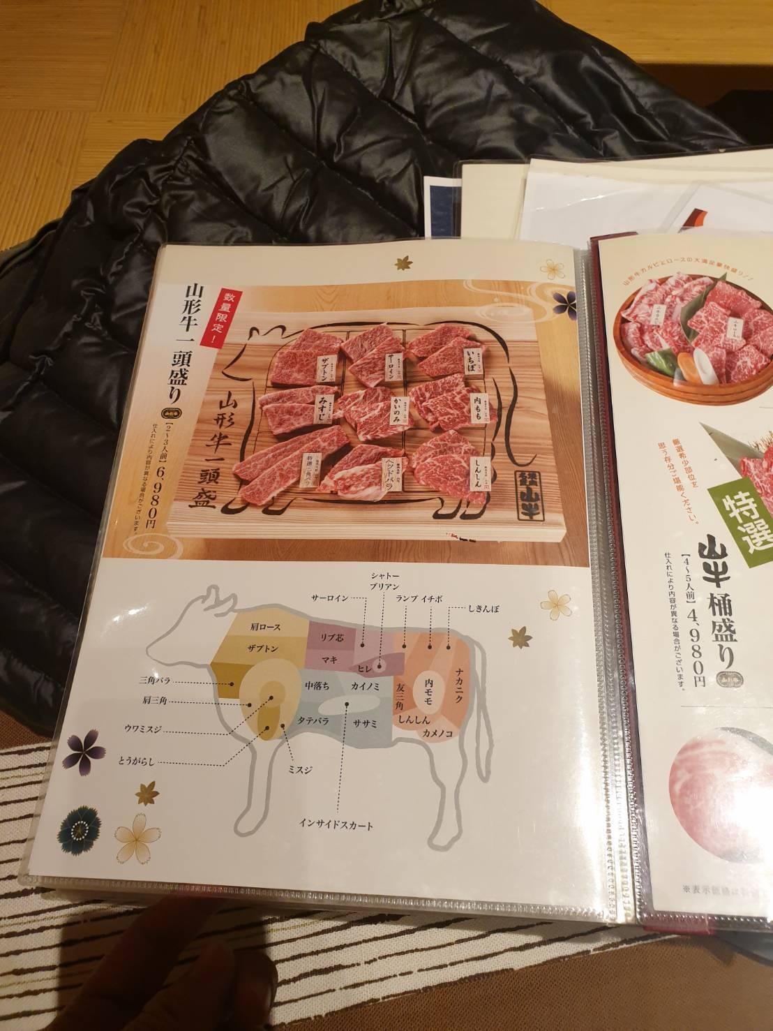 พอเข้ามาถึงเราก็เอารูปให้พนักงานดูเลยว่าเราจะกินเนื้ออันนี้คือเนื้อวัวโยเนอะซาวะ Yonezawa เนี้ยจ๊ะ พนักงานก็บอกว่าร้านเค้าขายแค่เนื้อทั่วไปที่มีอยู่ใน Yamagata เราไม่เรื่องมากอยู่แล้ว ณ จุดนี้อะไรก็กินได้หมดอุส่าห์เดินมาละ มาดูเมนูกันเลยจ้า