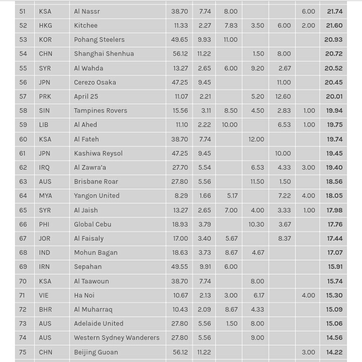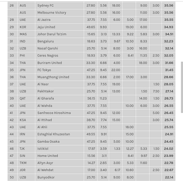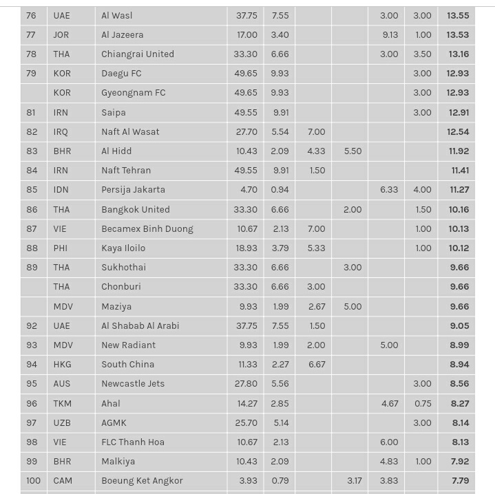อันดับสโมสรฟุตบอล ของไทย ในเอเชียล่าสุด บุรีรัมย์ ครองอันดับหนึ่งของไทย เขียงราย อันดับพุ่ง