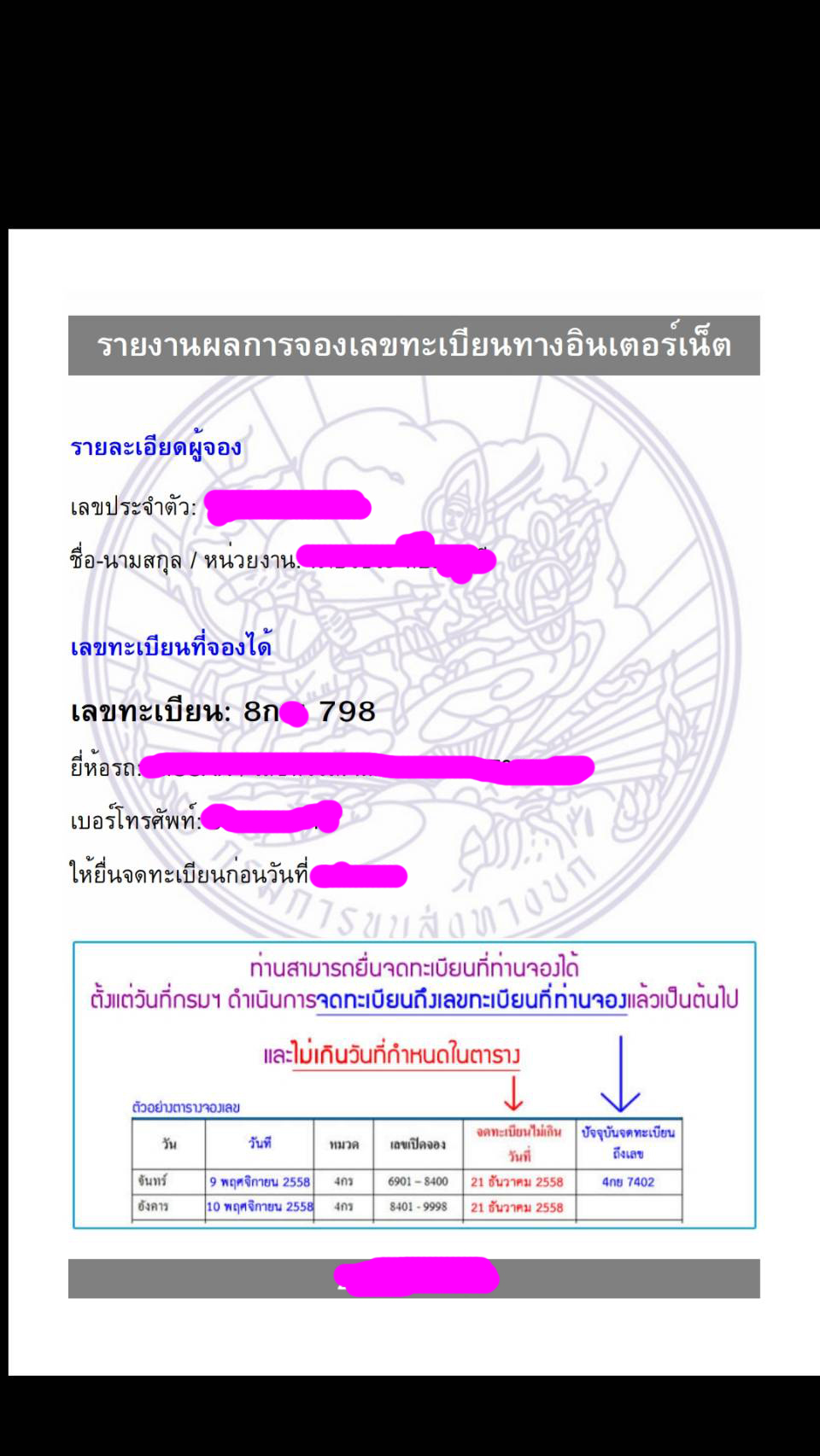 สอบถาม จองทะเบียนรถยนต์ 798 หน่อยครับ