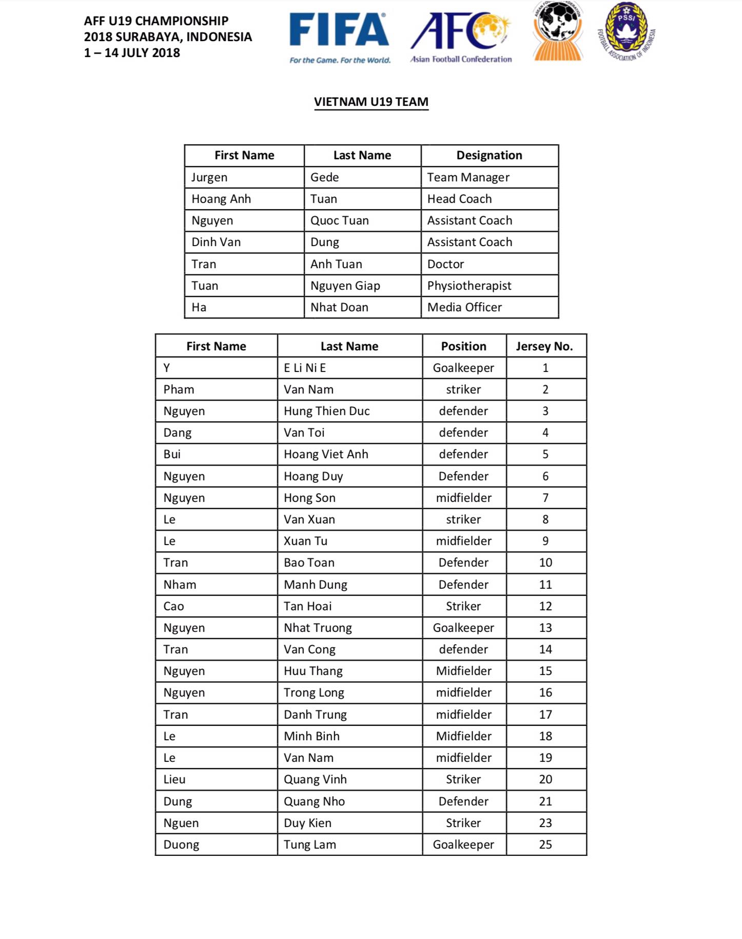 รายชื่อเวียดนามยู-19 ในปี2018และ ปี2017
