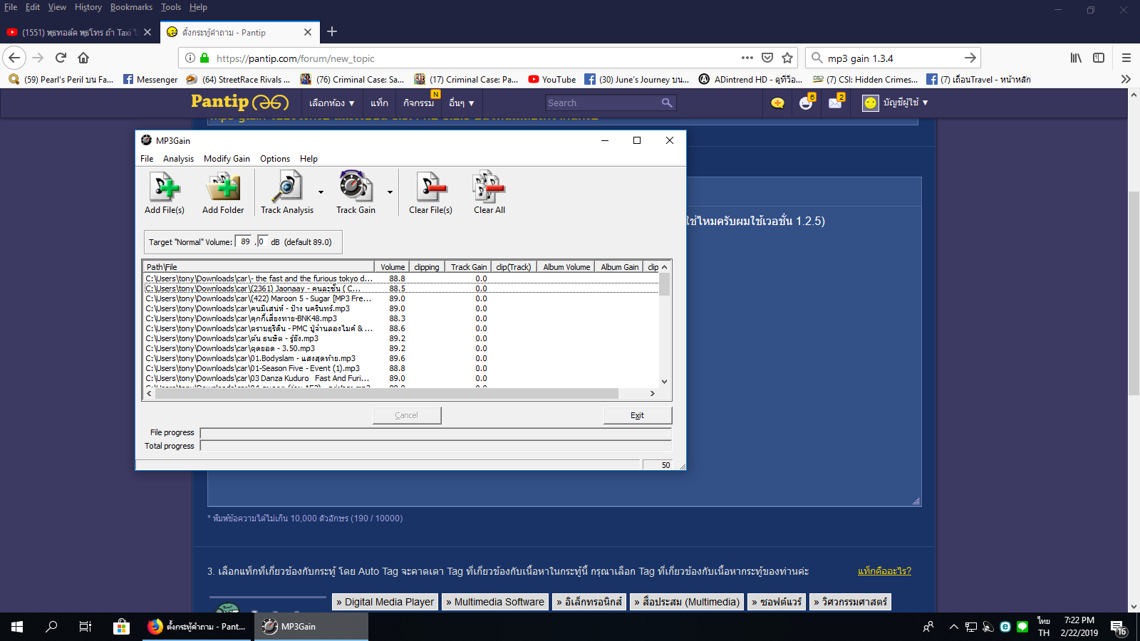 โปรแกรม mp3 gain นำเพลงเข้าได้บางเพลง แก้ยังไงครับ