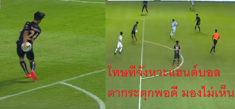 เมื่อวานจังหวะปัญหาช่วงทดเวลาคู่ราชบุรี-บีจี มีดึงกันในเขตโทษ แต่ไม่มีภาพช้าจังหวะกังขาให้ดู วันนี้คู่ชลบุรี-เมืองทอง ช่วงทดเวลามีจังหวะน่าจะแฮนบอล ปล่อยกล้องจับภาพในสนามตั้งนาน ไม่มีตัดจังหวะภา