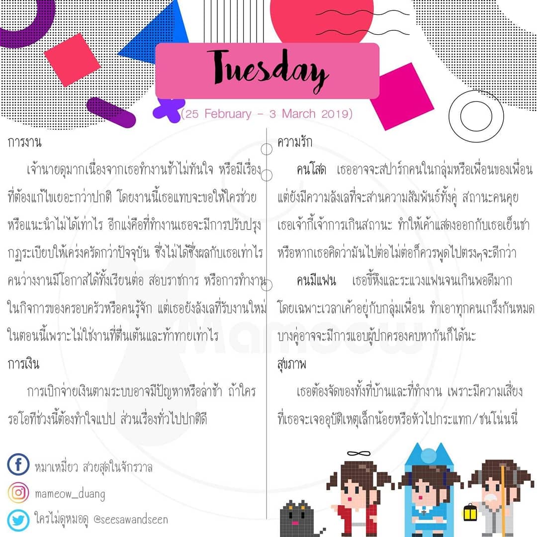 ดวงรายสัปดาห์ระหว่างวันที่ 25 กุมภาพันธ์ - 3 มีนาคม 2562