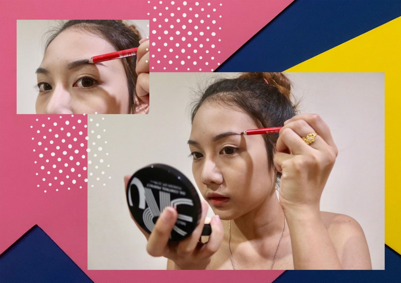โดยการวาดโครงขึ้นมาก่อน แล้วค่อยๆระบายสีตามทรงคิ้วแบบเบาๆ อย่าลงหนักจนคิ้วเป็นปลิงล่ะ