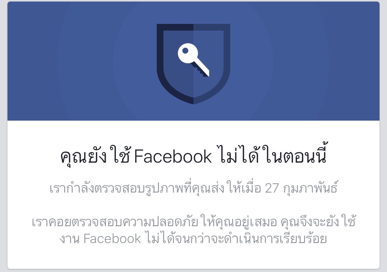 Facebook ขึ้นข้อความแบบนี้หลังการยืนยันตัวตนต้องรอกี่วัน