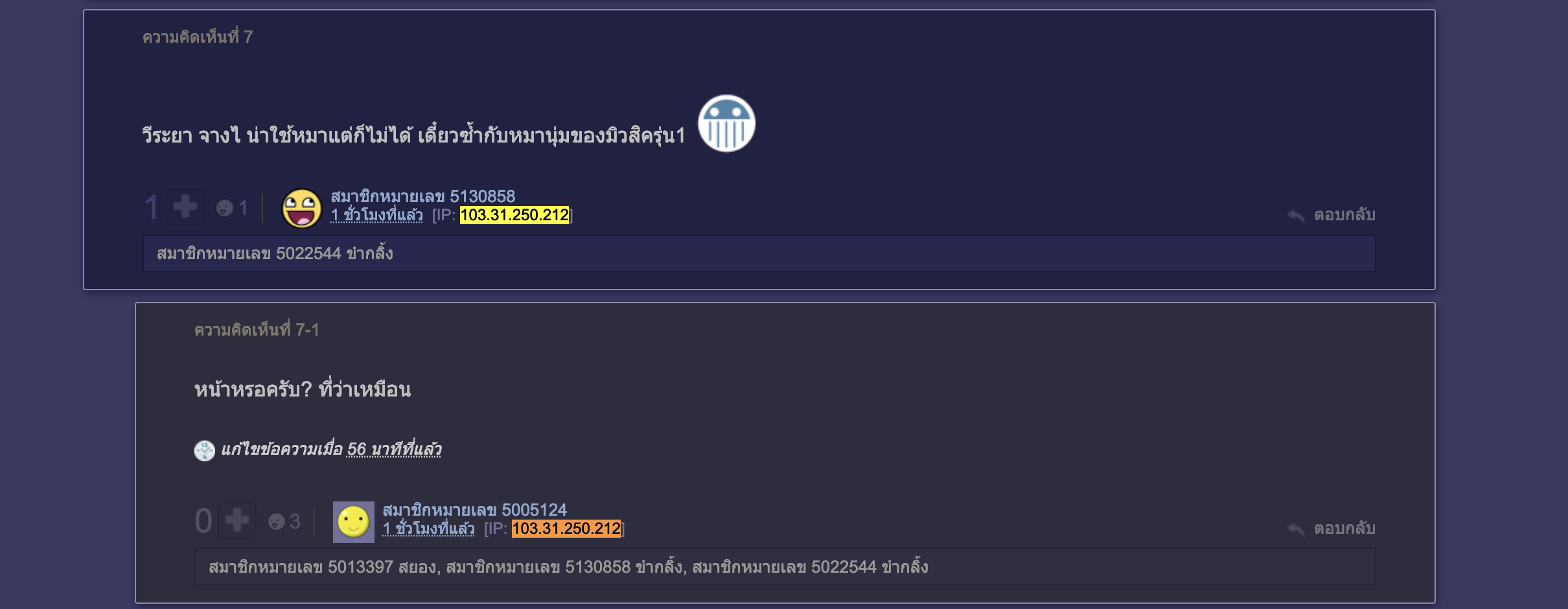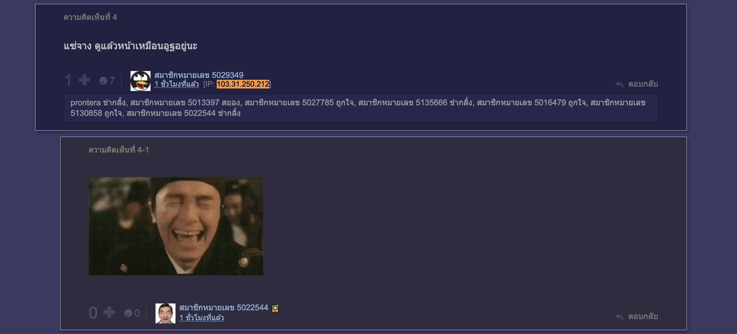 สมาชิกหมายเลข 3532611 ขำกลิ้ง, สมาชิกหมายเลข 1308760 ขำกลิ้ง, Enixma ถูกใจ, สมาชิกหมายเลข 878124 ขำกลิ้ง, สมาชิกหมายเลข 2497577 ขำกลิ้ง, สมาชิกหมายเลข 5048186 ถูกใจ, สมาชิกหมายเลข 4530625 ขำกลิ้ง, pureerup ถูกใจ, ispider ขำกลิ้ง, เชียนปืนใหญ่ ขำกลิ้งรวมถึงอีก 15 คน ร่วมแสดงความรู้สึก