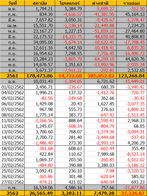 Sinthorn Summary 27/2/2562 : ต่างชาติขายสุทธิ -640.04 ลบ.