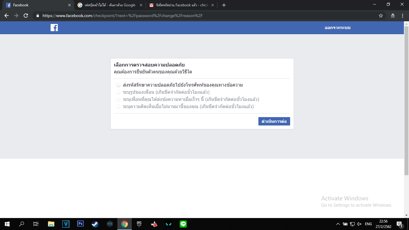 เฟสบุ๊คให้ยืนยันตัวตน ทำยังไงดีคะ