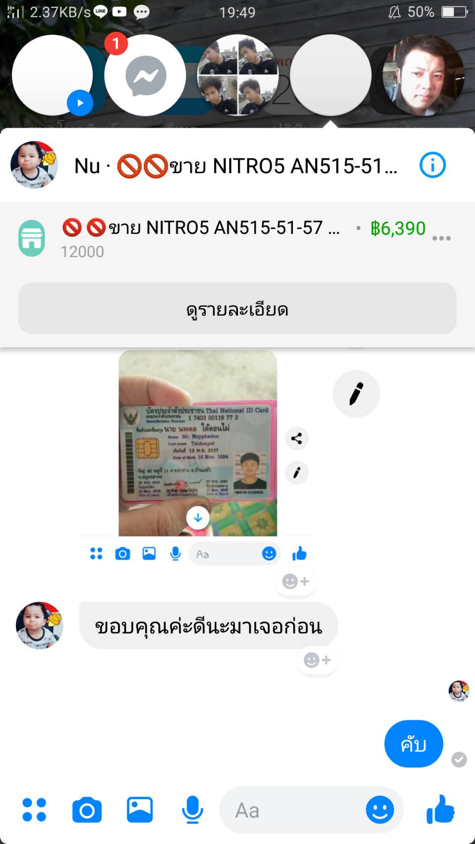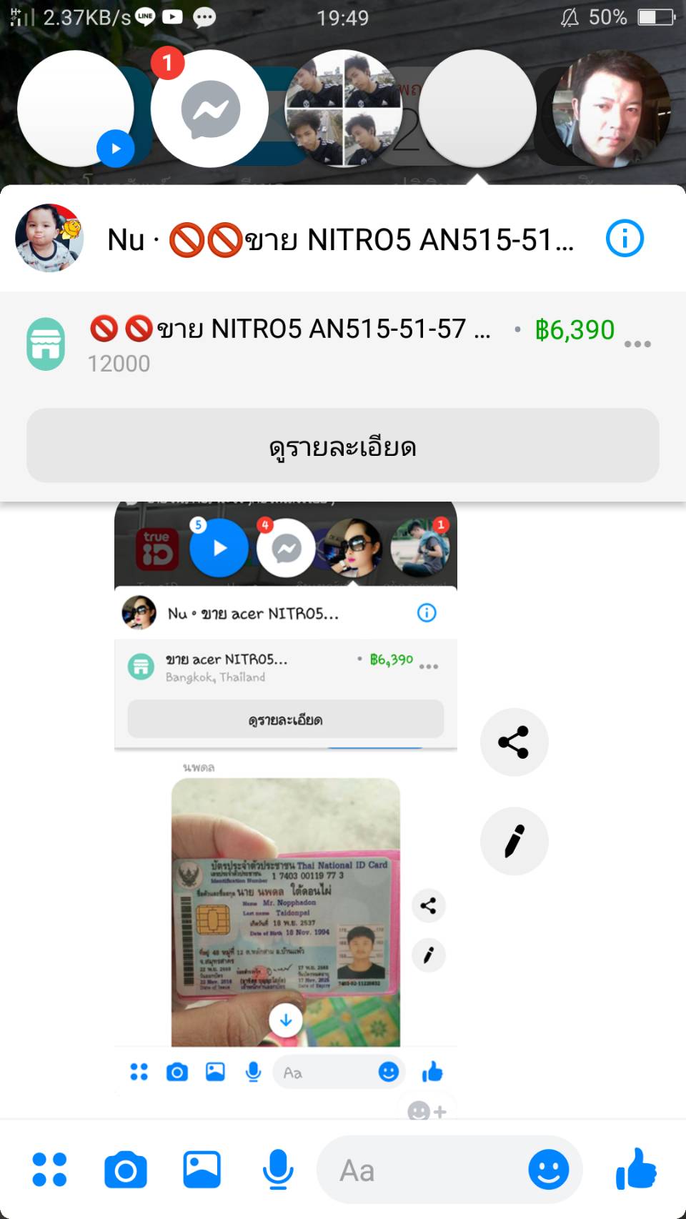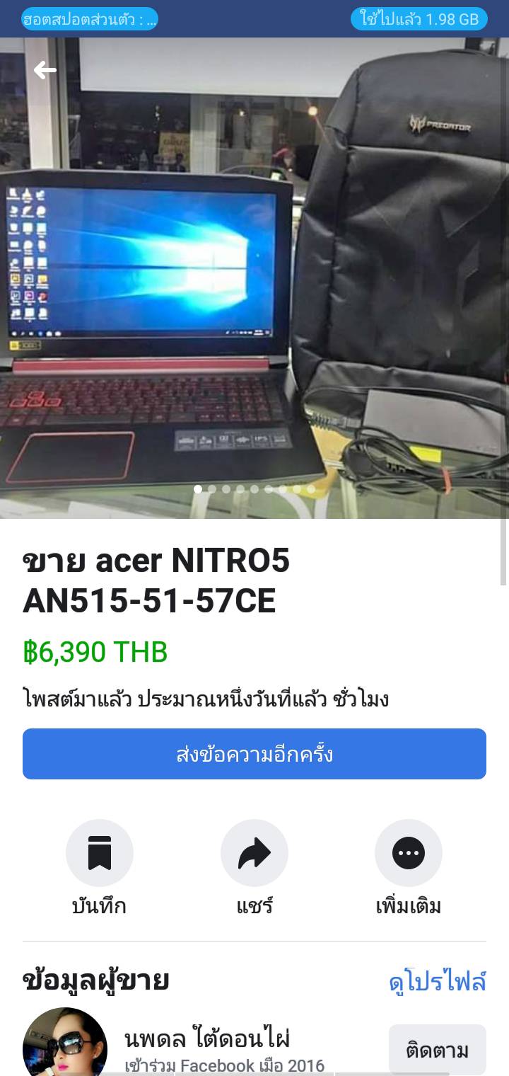 คือวันนี้ผมได้สนใจ NOTEBOOK ตัวนีง ที่MAKET ในเฟสบุ๊ค จึงสอบถามไปยังเจ้าของไปทาง INBOX ในชื่อเฟส นพดล ใต้ดอนใฝ่ ในราคา 6390 ผมสนใจมากเลยตกลงซื้อขาย ทางเจ้าของเครื่อง เลยให้ผมมัดจำ ผมเลยถามเลขบัญชีไป แต่เค้ากลับให้โอนไปที่ True monkey wallet 500 ผมเลยขอบัตรประชาชนเค้าถ่ายรูปมาด้วย เค้าก้อส่งมาให้นะครับ แต่ทันใดนั้นเอง ก้อมีเฟสใครไปรู้ทักมา ผมเลยคุยกัน เค้าบอกผมว่า พี่ เฟส นพดล ใต้ดอนใฝ่ อย่าเพิ่งโอนเงินนะ มันหลอกให้คนโอนเงินมาหลายคนแล้วสินค้าไม่มีอยู่จริง ผมเลยลอดตัวไป สรุป เอาบัตรประชาชนใครไม่รู้มาแอบอ้าง และสร้างเฟสปลอม หลอกลวงชาวบ้าน ผมกำลังตั้งไลน์กลุ่มเพื่อปรึกษากัน ว่าจะเอาเรื่องมันได้อย่างไรบ้าง