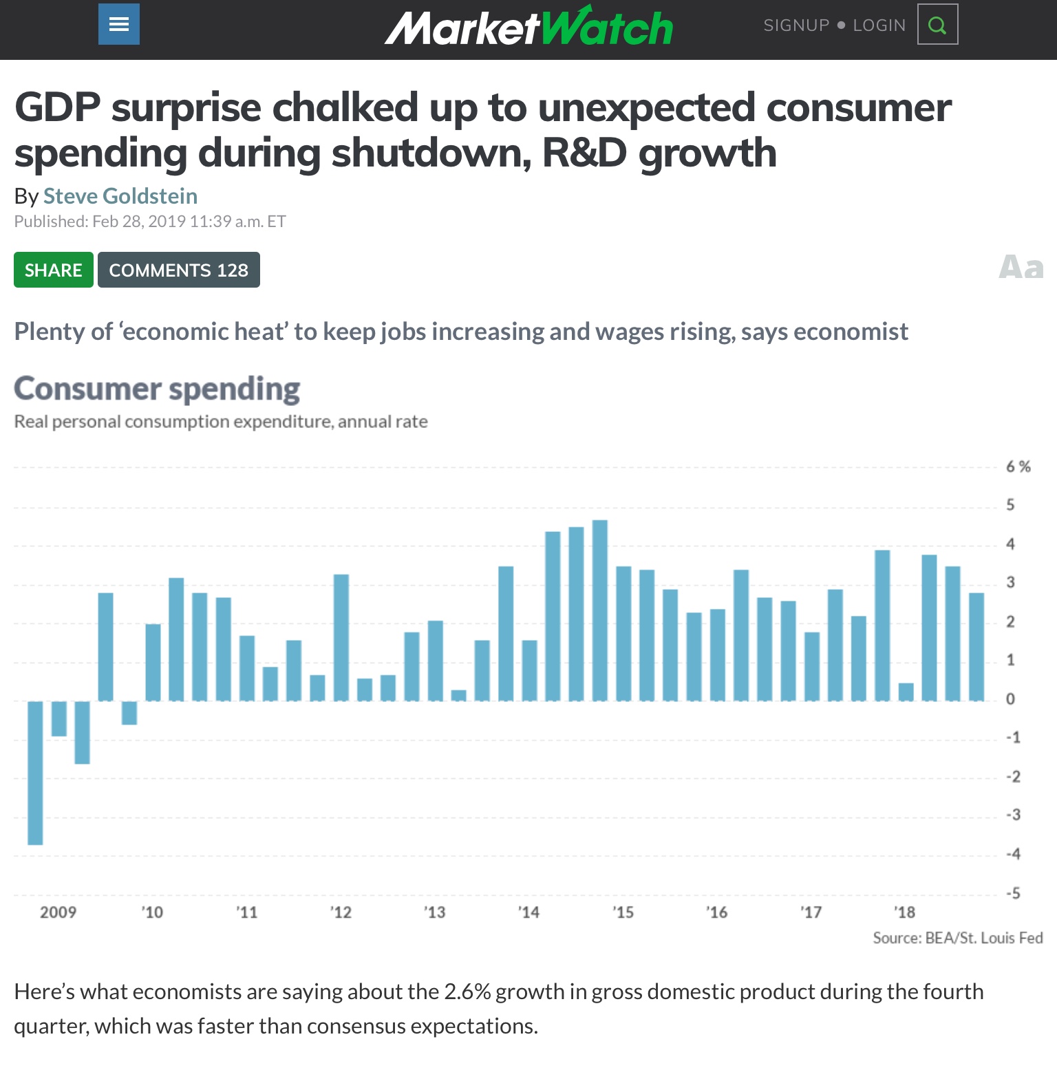 สหรัฐประการ GDP ไตรมาสสี่ 2018 เติบโตดีกว่าที่คิดไว้ แม้จะมี trade war และ government shutdown