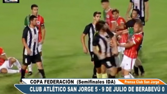 มาร์ติน คอสต้า กองหลัง 9 เด ฮูลิโอ เด เบราเบวู สโมสรในลีกระดับล่างของประเทศอาร์เจนตินา แสดงพฤติกรรมที่ไม่เหมาะสม หลังจากต่อยนักเตะ ซาน ฮอร์เก้ ตอนที่อยู่ในสนามถึง 3 คนด้วยกัน
