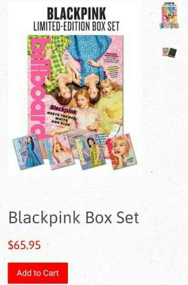 โดยเมื่อวันที่ 28 ก.พ. ที่ผ่านมา "Billboard" ได้ปล่อยชุด "limited edition box set" ออกมาทั้งหมด 5 หน้าปกและโปสเตอร์ขนาดเต็มของ "แบล็กพิงก์" 5 ภาพ ทั้งนี้ "Billboard" ยังได้ปล่อยภาพสวยๆ จากการถ่ายปกซึ่งจัดขึ้นที่ "Smashbox Studios" ในลอสแองเจลิส เมื่อวันที่ 8 ก.พ. ที่ผ่านมาอีกด้วยซึ่งคาดว่าการเปิดจำหน่ายน่าจะ sold out อย่างรวดเร็ว