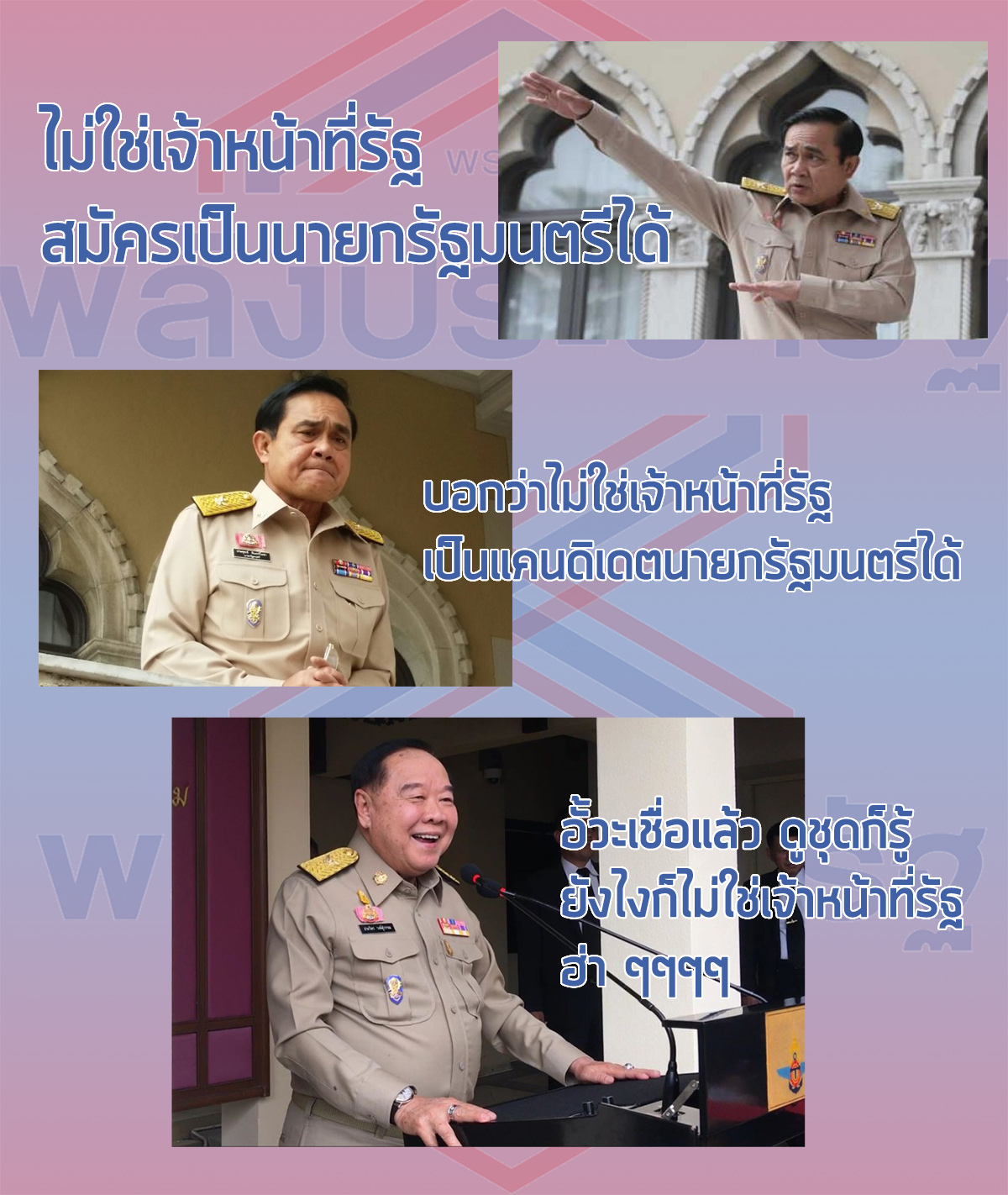 ช่วยกันรณรงค์ "ไม่ใช่เจ้าหน้าที่รัฐสมัครเป็นแคนดิเดตนายกรัฐมนตรีได้" ใครไม่ช่วย ผมถือว่าไม่รักลุงตู่จริงครับ