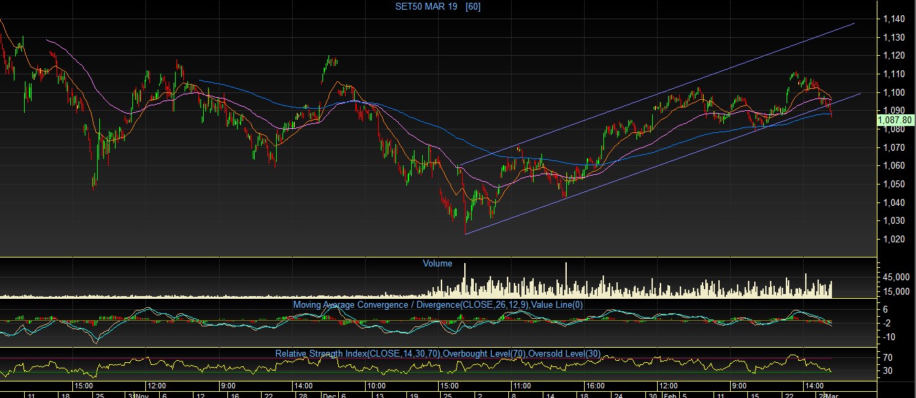 S50H19 TF60Min: หลังจากที่ดัชนีได้ขึ้นไปทดสอบระดับ 1110 จุด หลังจากนั้นก็เริ่มเห็นแรงเทขายออกมาอย่างต่อเนื่อง อาจจะเป็นเพราะ Indicator