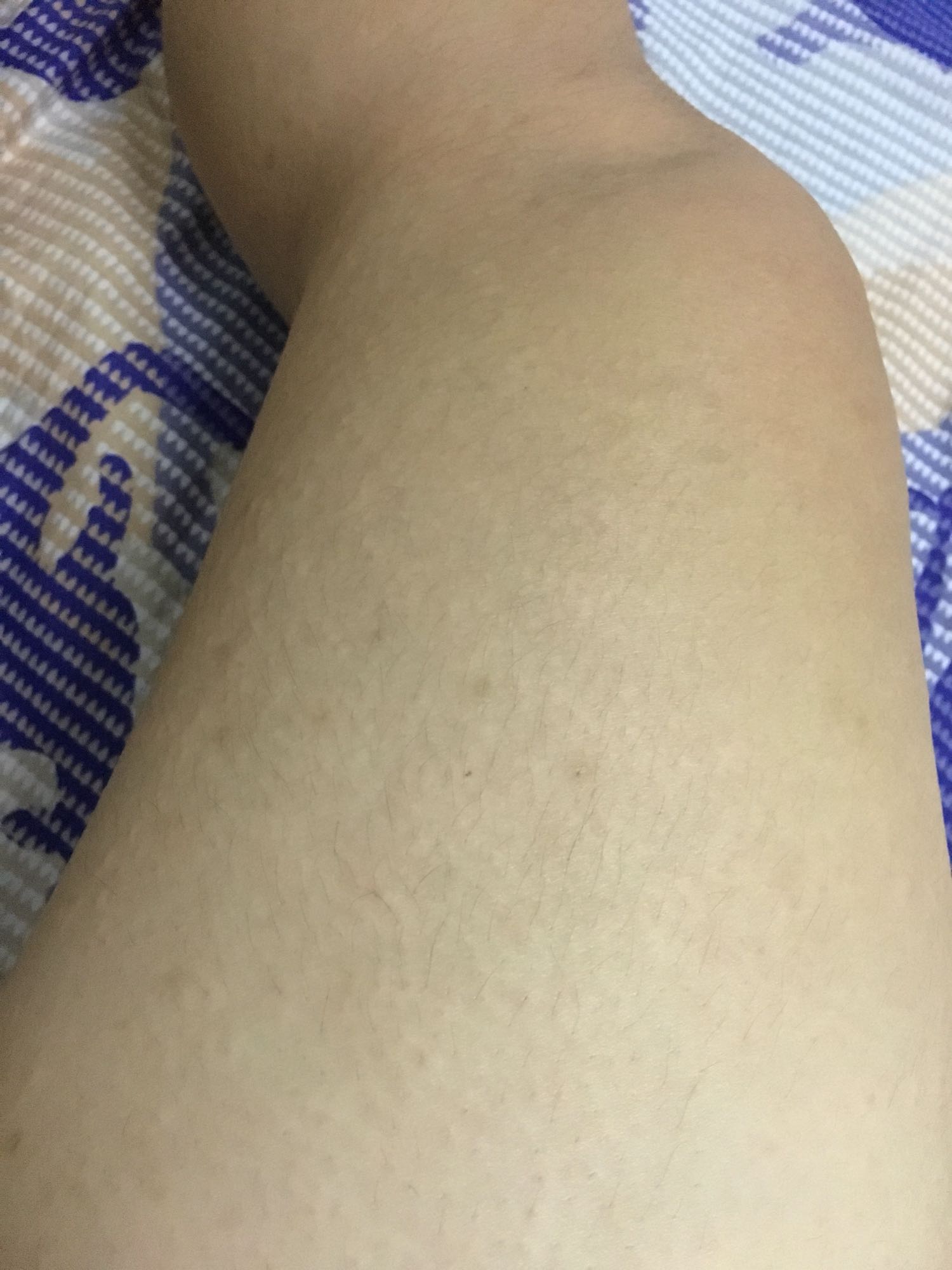 เนื่องจากเราไปสัมมนาตจว.กับทางที่ทำงานแล้วได้มีการเล่นสวนน้ำและกินปาร์ตี้ตอนกลางคืน พอเช้าวันถัดมาแขนและขาเป็นผื่นเม็ดๆๆ เต็มเลย ดังรูป(รูปอาจจะไม่เหมาะสม ขออภัยด้วยนะคะ)