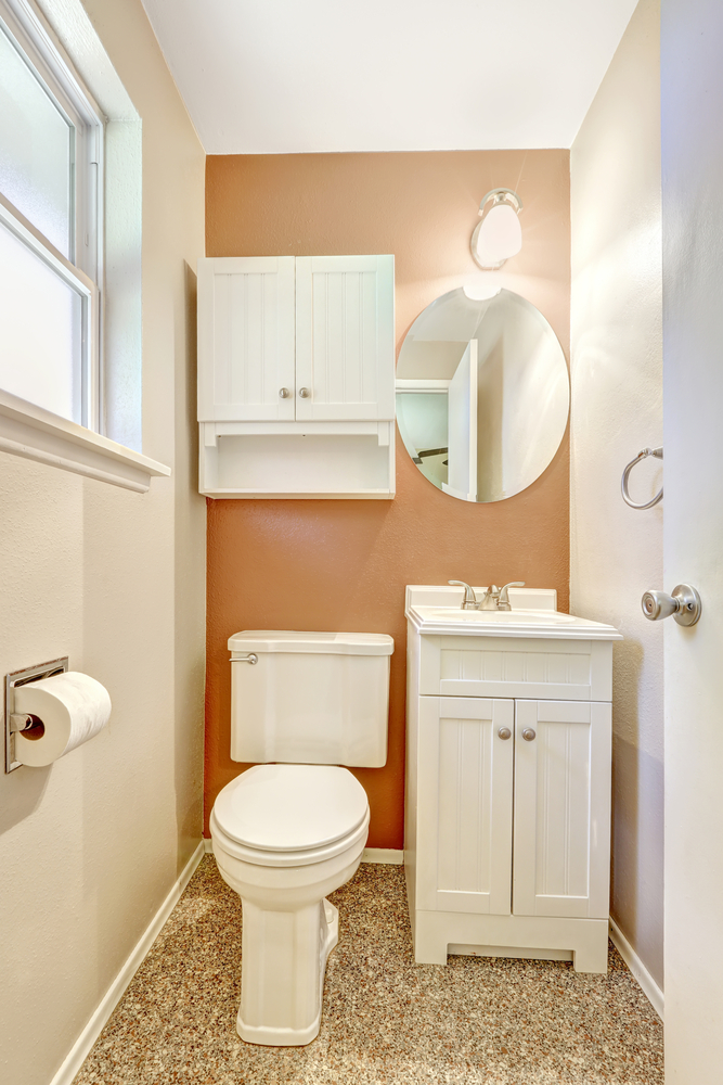 ห้องน้ำขนาดเล็กมาก แต่แสงจากธรรมชาติและแสงไฟก็ช่วยให้ดูกว้างได้