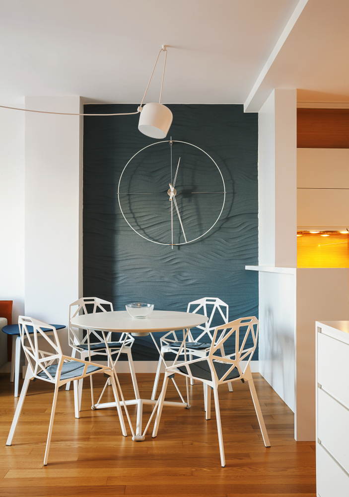 พื้นที่ทานข้าวขนาดเล็กแต่ดูไม่เล็ก เพราะตาจ้องแต่นาฬิกาแขวนที่อยู่บนผนัง