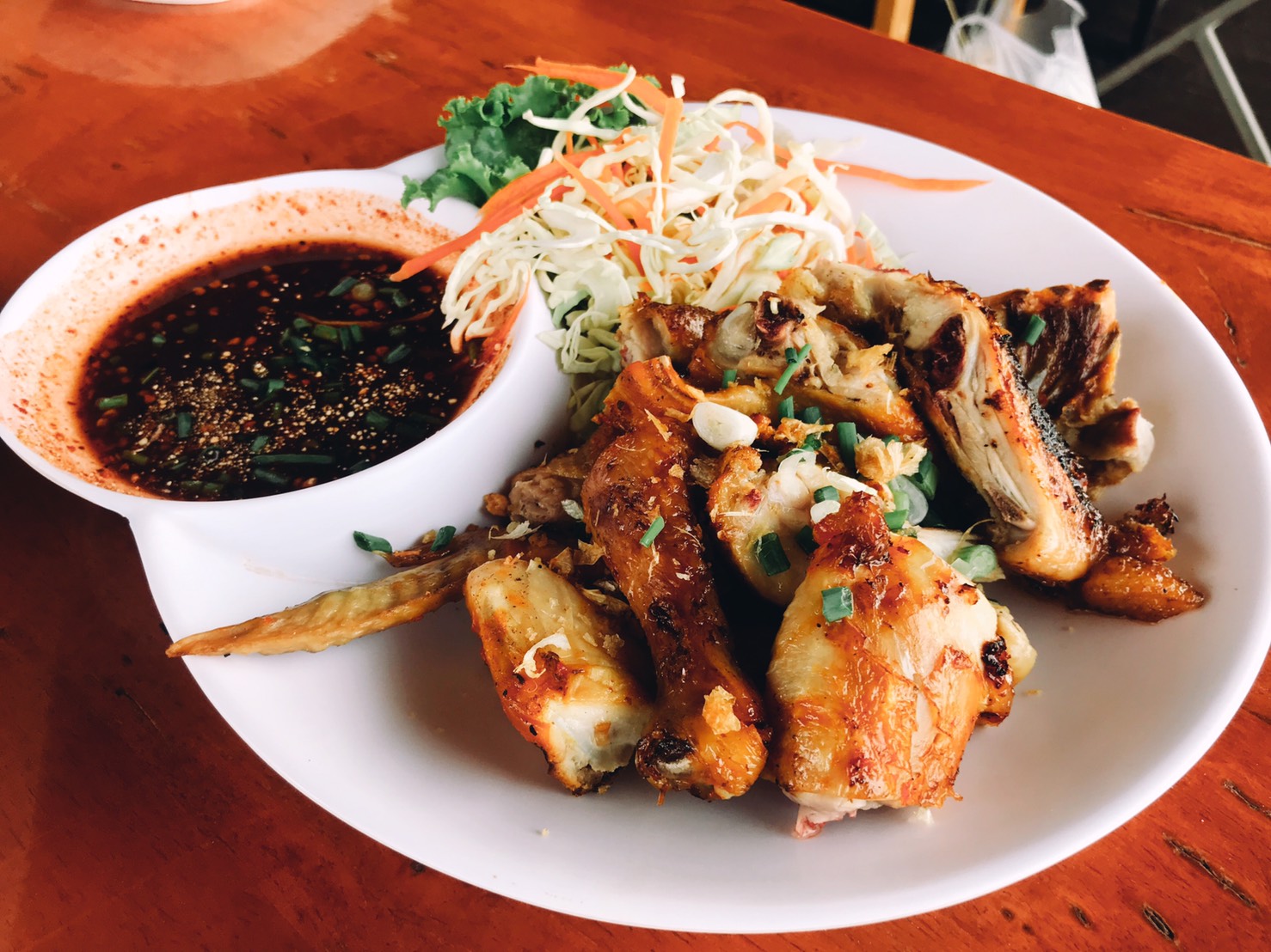 ไก่ย่าง ครึ้งตัว (ไก่เหนียวมาก เหมือนย่างยังไม่สุกดีด้วย ยังมีเลือดแดงๆอยู่เลย)
