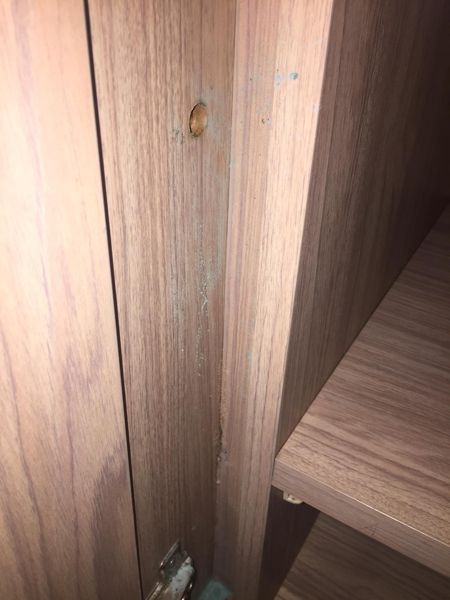 เช่าคอนโดที่มีเฟอนิเจอร์ไม้แบบ buildin แล้วมีลักษณะผงสีเขียวๆร่วงลงมาที่พื้นเป็นกองๆ มันคืออะไร