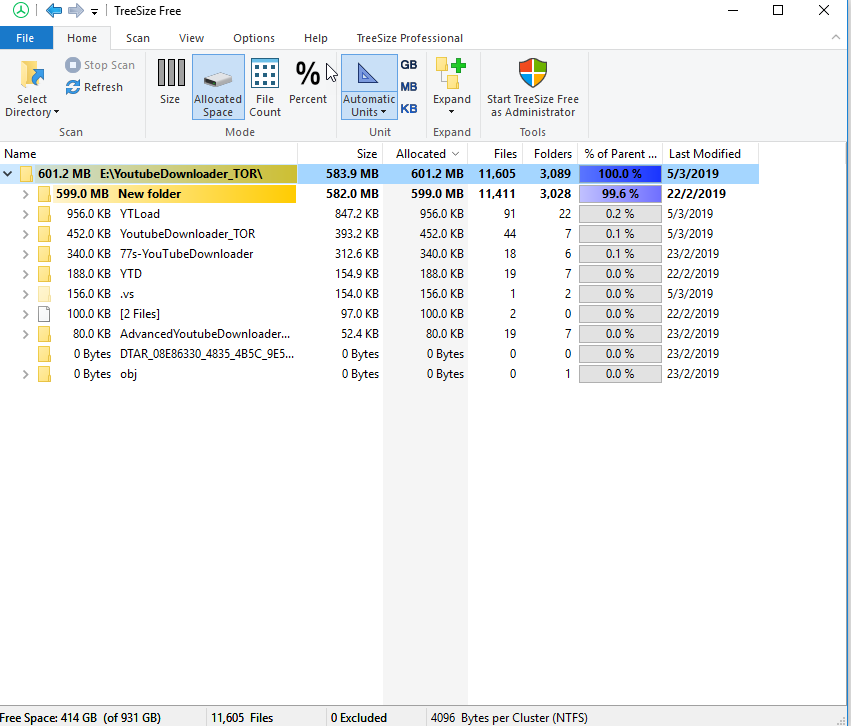 3. ค่า ความจุที่มาจากโปรแกรม TreeSizeFree