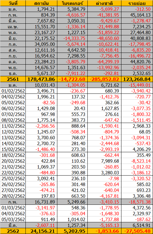Sinthorn Summary 1/3/2562 : ต่างชาติขายสุทธิ -1,778.95 ลบ.