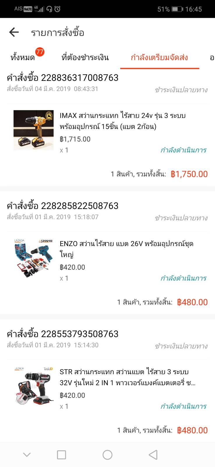 ว่าด้วยเรื่องสว่านไร้สาย ผมมักจะหาสั่งจากในราซาด้าเพราะว่ามีให้เลือกหลายรุ่นหลายราคา บ่างก็จากไทยส่งไวดี บ้างก็มาจากจีน5-6วันก็ถือว่ายังไวอยู่ แต่ที่ต้องลุ้นก็คือ การซื้อของจากจีนย่อมต้องมีการลุ้นอยู่ในตัวเพราะว่ามันราคาถูกกว่าปกติมาก อย่างที่ผมสั่งมาจากในรูป ผมเจอราคา สว่าน ENZO ไร้สายราคา480บาท ตอนแรกที่เห็นก็กดสั่งซื้อไปแต่ไม่มีเก็บเงินปลายทาง ผมก็ได้ยกเลิกไป แต่พอไม่นานผมกลับไปดูอีกคราวนี้มีจ่ายปลายทางเลยลองสั่งดูเพราะว่าไม่น่ายะเสียหายอะไรเพราะเรายังได้เห็นกล่องเห็นของ แต่ก็ยังไม่ได้เห็นเพราะเคอรี่โทรมาถามก่อนว่ามีของมาส่ง ผมเลยถามว่าเป็นกล่องขนาดไหน เคอรี่บอกว่าขนาดเท่าฝ่ามือ ผมรู้เลยว่ามันไม่ใช่สว่านละ ผมเลยยกเลิกไม่รับของ จบ ผมทำงานต่อละครับ
