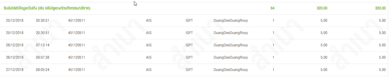 คือแค่ยอดมกราคมผมคิดว่าโอเคถือว่าพลาด แต่ไอยอดเดือน กุมพาพันธ์เนี้ย ทำไมยังมาหลังจากแม่แจ้งให้ปิดไปแล้ว ตอนแรกแม่คิดว่าค่าเน็ต แต่ผมไปดูแพ็คเก็จแล้วมันอันลิมิต เป็นไปไม่ได้ ที่แม่ไม่คิดว่าค่า SMS เพราะว่า แม่ผมกลัวจนวิตกริตมากกับ SMS เสียตัง เจอ SMS มาแกลบตลอดไม่กล้ากดอะ โฆษณาเด้งในมือถือแกปัดทิ้งแกกลัว เพราะคนแถวบ้านโดนกันเยอะมาก พวก SMS นี้ (หากินกับคนไม่รู้เรื่องต่างจังหวัดชัดๆ) ผมอยากรู้ว่าเมื่อไหร่อะบริการห่าเหวพวกนี้จะหมดไปซะที ใครแง่งจะอยากได้ SMS สั้นๆที่มูลค่า 5 บาทกันวะทั้งที่มีเน็ตเปิดดูได้สบายๆ ทำไมต้องหา-กับคนที่ไม่รู้เรื่องต้องมาจ่าย มันจะหมดไปซะทีได้มั้ย นี่ผมต้องโอนเงินไปให้แม่จ่ายเงิน บริการเชี่ยๆที่ไม่ได้ต้องการ จะยังมีทำซากอะไรวะสมัยนี้ไอ SMS ข่าวเก็บตังเนี้ย เห็นแก่ประโยชน์ร่วมเลยยอมให้บริการพวกนี้ยังอยุ่ ผมเกลียดมากบอกเลยครับ ถ้ามีที่ฟ้องผมจะฟ้องเลย แบบที่ฟ้องแล้วจัดการได้เงินแง่งไม่ใช่น้อยๆ