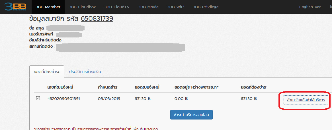เวป 3BB ทำไมพิมพ์ใบสำเนาค่าบริการไม่ได้ # 2
