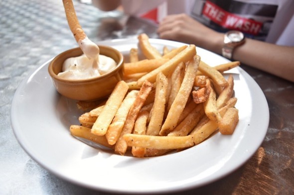 และอีกเมนูนึงที่ขาดไม่ได้ก็คือเฟรนฟรายจานเบิ้มราคา 99 บาท ทานคู่กับ Sauce Cream ขอบอก Sauce Cream ที่นี้อร่อยไม่เลี้ยนยิ่งกินกับเฟรนฟรายทอดร้อนๆกรอบๆ สรุปอร่อยจริงๆทอดจนเหลืองสวยงาม (เนื้อเฟร้นฟรายของที่นี่จะชิ้นใหญ่มากค่ะ กรอบนอกแล้วข้างในจะนิ่มมากๆ)