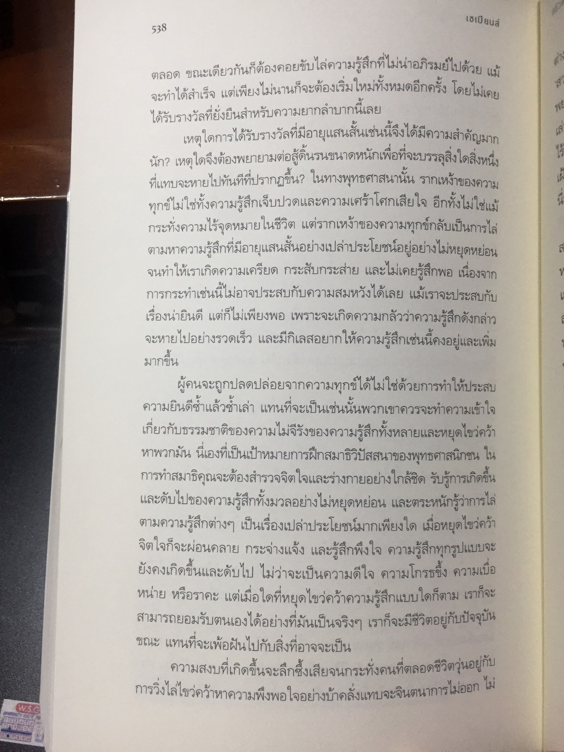 เหตุใดการได้รับรางวัลที่มีอายุแสนสั้นเช่นนี้จึงได้มีความสำคัญมากนัก? เหตุใดจึงต้องพยายามต่อสู้ดิ้นรนขนาดหนักเพื่อที่จะบรรลุสิ่งใดสิ่งหนึ่งที่แทบจะหายไปทันทีที่ปรากฏขึ้น? ในทางพุทธศาสนานั้น รากเหง้าของความทุกข์ไม่ใช่ทั้งความรู้สึกเจ็บปวดและความเศร้าโศกเสียใจ อีกทั้งไม่ใช่แม้กระทั่งความไร้จุดหมายในชีวิต แต่รากเหง้าของความทุกข์กลับเป็นการไล่ตามหาความรู้สึกที่มีอายุแสนสั้นอย่างเปล่าประโยชน์อยู่อย่างไม่หยุดหย่อนจนทำให้เราเกิดความเครียด กระสับกระส่าย และไม่เคยรู้สึกพอ เนื่องจากการกระทำเช่นนี้ไม่อาจจะประสบกับความสมหวังได้เลย แม้เราจะประสับกับเรื่องน่ายินดี แต่ก็ไม่เพียงพอ เพราะจะเกิดความกลัวว่าความรู้สึกดังกล่าวจะหายไปอย่างรวดเร็ว และมีกิเลสอยากให้ความรู้สึกเช่นนี้คงอยู่และเพิ่มมากขึ้น