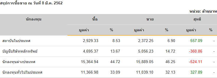 Sinthorn Summary 21/3/2562 : ต่างชาติขายสุทธิ -757.94 ลบ.