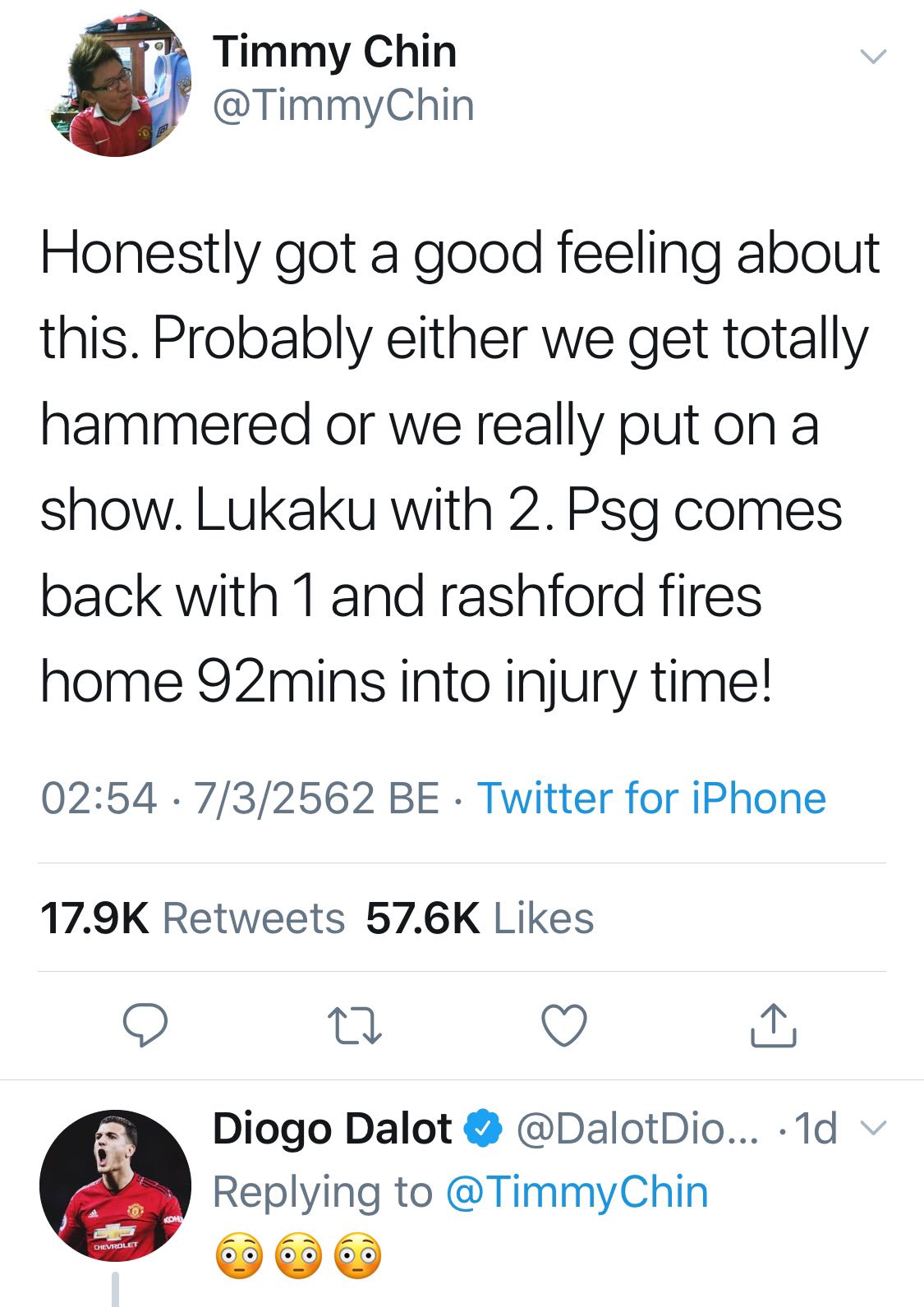 นัดต่อไปวันอาทิตย์นี้ทิมมี่ก็ทายไว้แล้ว ถ้าถูกอีกเห็นว่า แอชลีย์ ยัง จะส่งเสื้อพร้อมลายเซ็นของทุกคนในทีมไปให้