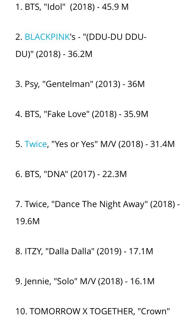 ที่น่าสนใจคือยอดวิวของเด็ก ๆ ITZY รุกกี้ Teen crush จากเจวายพีที่พุ่งไปถึง 17.1 M กันเลยทีเดียว นับว่าเป็นอันดับ 1 ด้านยอดวิวภายใน 24 ชั่วโมงแรกของเพลงเดบิวต์ ตามมาด้วยวงน้องชายของ BTS อย่าง TxT ที่ทำสถิติสูงสุดของฝั่งบอยแบนด์ด้วยยอดวิว 15.1 M