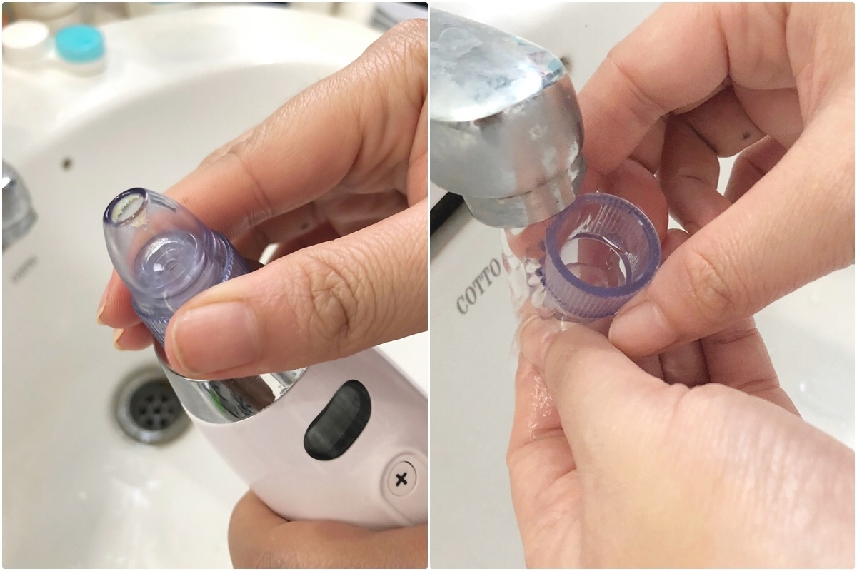 ส่วนการทำความสะอาดก็ไม่ยากอย่างที่คิดนะคะ การทำความสะอาด เเบ่งเป็น 2 ส่วน คือส่วนเเรกถอดหัวดูดสิวเสี้ยนออก ล้างน้ำด้วยน้ำเปล่าและเช็ดให้แห้ง ส่วนที่2 คือ กรณีที่โฟมตัวกรองตัน ให้ถอดโฟมมาล้างน้ำ ผึ่งให้แห้ง และเปลี่ยนใส่โฟมอันใหม่เข้าไปแทน