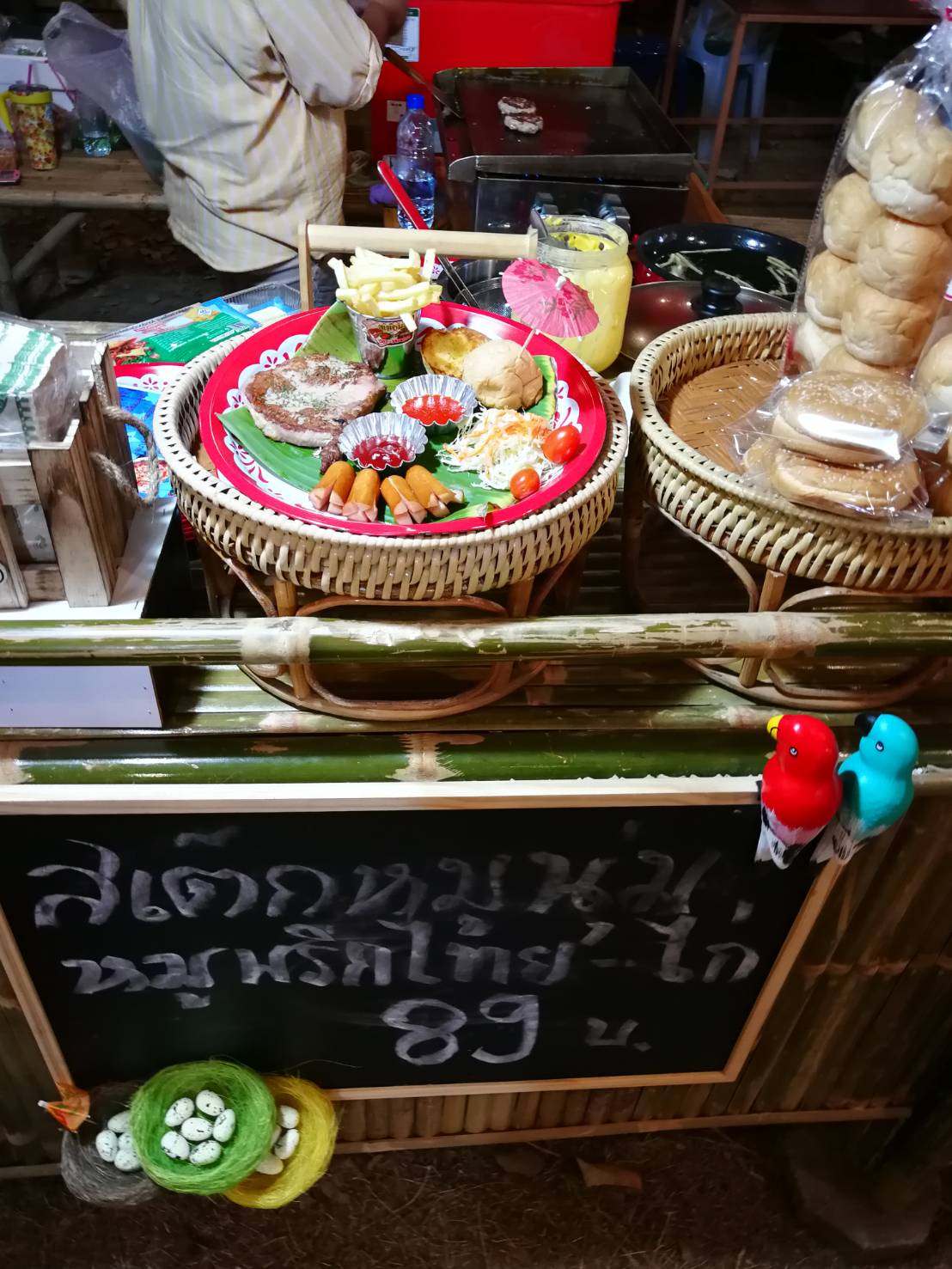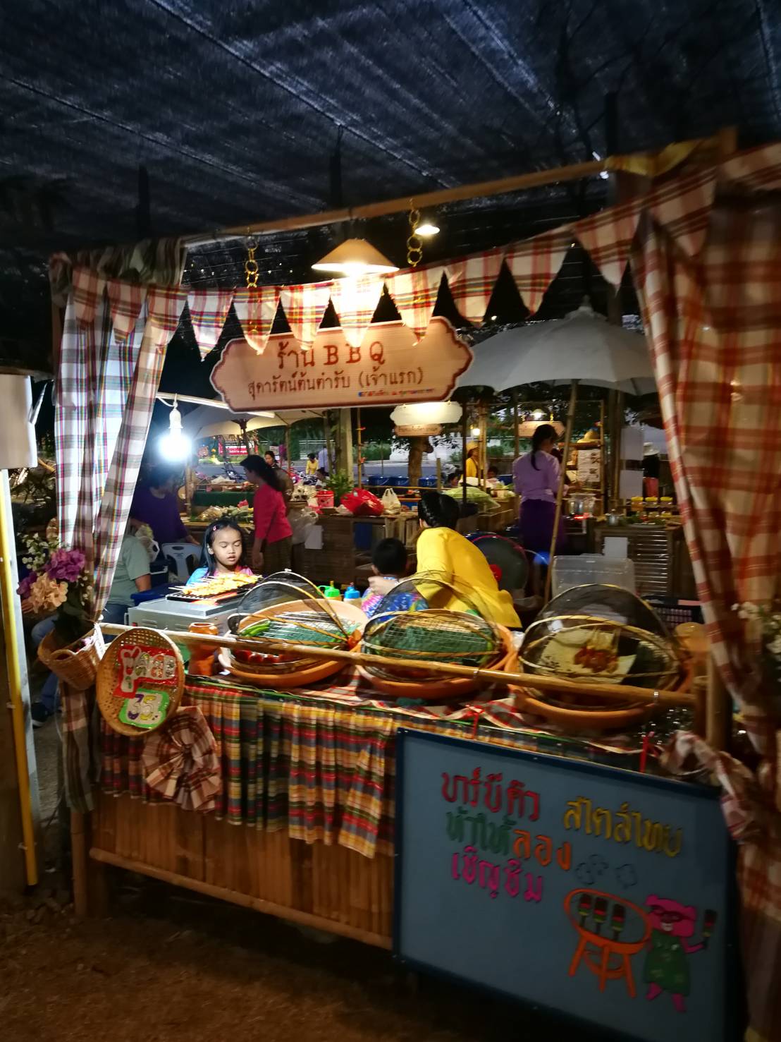 วันนี้ที่ผมไป คือเย็นวันเสาร์ น่าจะเป็นช่วงพีคที่สุดของการขาย ประมาณหกโมงนิดๆ บรรยากาศกำลังน่าเดิน ลมพัดเย็นๆ เพราะตลาดอยู่ริมแม่น้ำ ผมเห็นมีร้านมาตั้งพอสมควร เห็นอาหารหลายอย่างที่น่ากิน แต่....ก็เห็นหลายร้านปิดไป เห็นหลายร้านเริ่มเก็บของเพราะไม่มีคนเดิน เห็นยิ้มแห้งๆของแม่ค้าแต่ละร้าน เห็นแล้วเลยรู้สึกว่า เราคงต้องช่วยกันบอกต่อแล้วล่ะ
