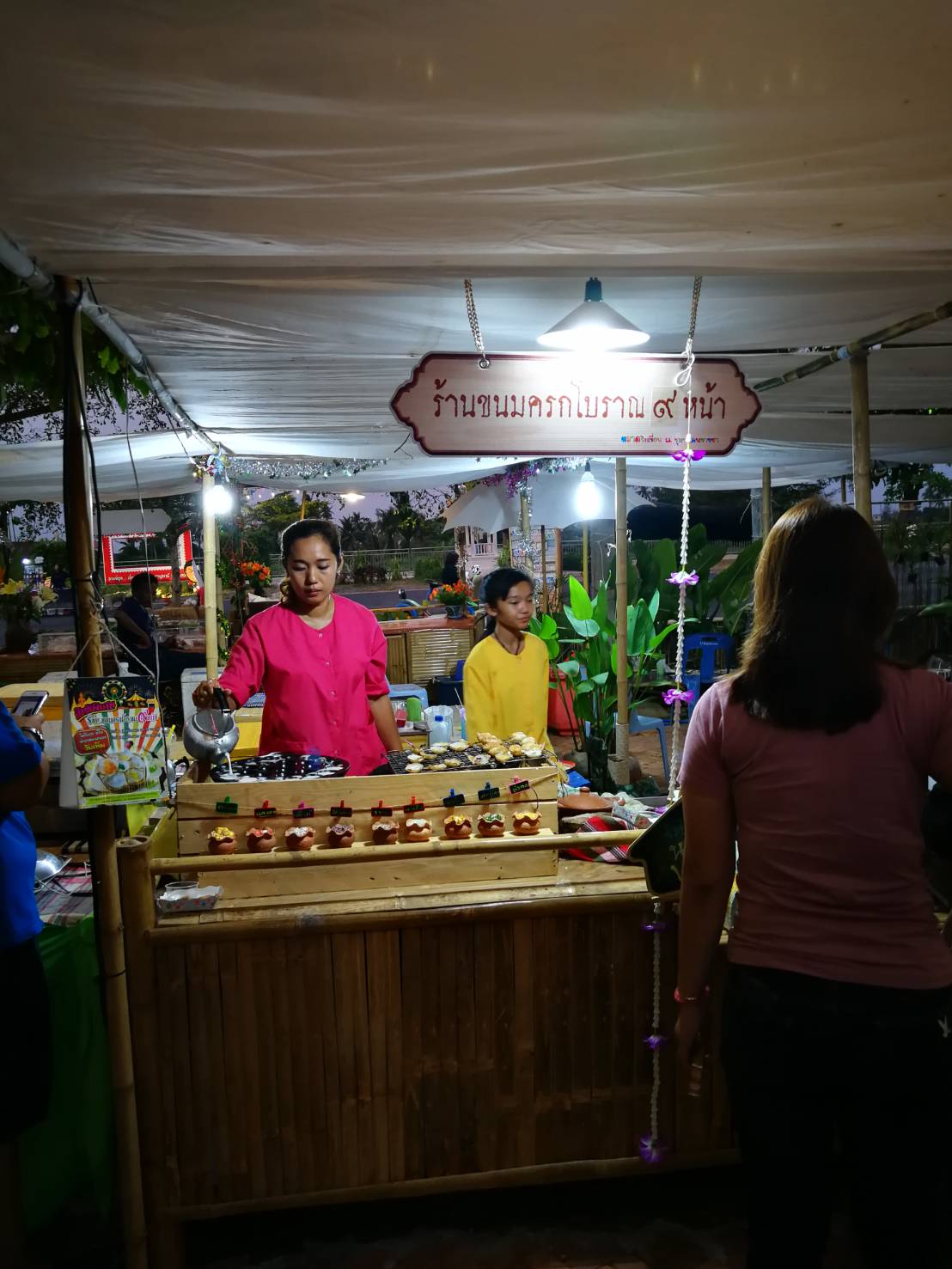 ต่อมาเป็น ร้านขายขนมดอกโสน ครับ มีให้เลือกว่า เนื้อขนมนั้นจะเป็นข้าวเจ้าหรือข้าวเหนียว ผมซื้อแล้วแต่ไม่มีบุญได้กินเดี๋ยวจะเล่าต่อว่าเพราะอะไร ..