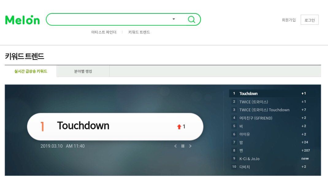 Touch Down ของ #TWICE ติดท็อปเสิช ต่อเนื่องในเมล่อน เว็บนาเวอร์ตั้งแต่เมือคืนยันเที่ยงวันนี้ ในนาเวอร์ทีวีคลิปรายการยังอยู่อันดับ 1 อีก