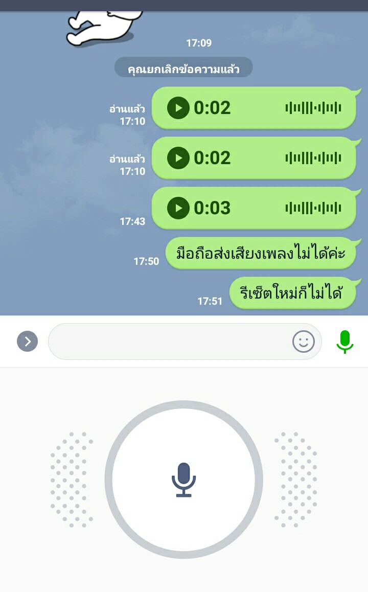 แต่เราเป็นคนชอบฟังเพลง และเวลาแชทกับเพื่อนเราชอบส่งเพลงไปให้เพื่อนฟัง โดยการเปิดเพลงในมือถือค้างไว้ แล้วเข้ามาในไลน์ แล้วกดตัวกลมๆค้างไว้ เพลงก็ยังร้องและมีเสียงอยู่