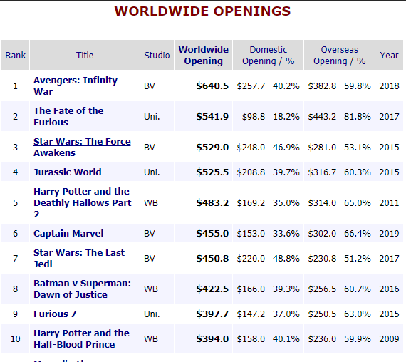 Captain Marvel เปิดตัวรายได้อันดับ 6 ตลอดกาล และอันดับ 2 ของ MCU เป็นรองแค่ Infinity War