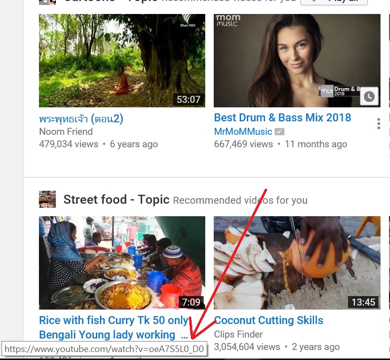 เมื่อเอา Mouse ไปชี้ที่คลิป จะมี URL ปรากฏขึ้นที่ด้านล่างของจอ (ดังรูป) อยากได้ URL นี้โดยไม่ต้องไปดู คลิป ต้องทำอย่างไรครับ