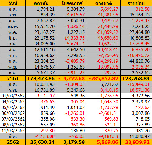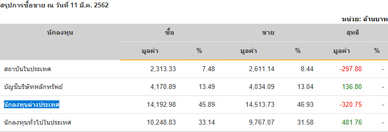 Sinthorn Summary 11/3/2562 : ต่างชาติขายสุทธิ -320.75 ลบ.