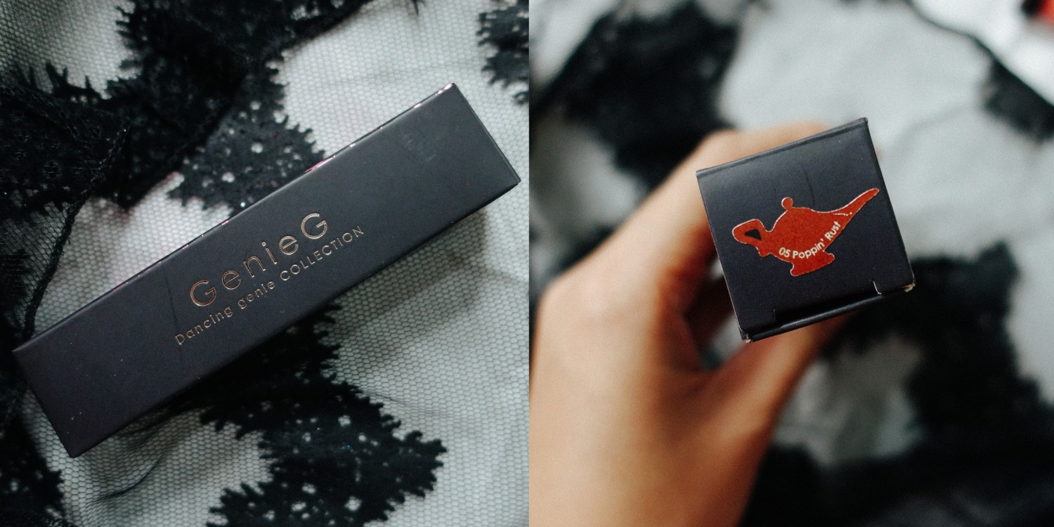 GENIE G DANCING GENIE COLLECTION เค้ามาในแพตเกจกล่องสีดำ ตัวแท่งสีใสเห็นสลับดำเห็นเนื้อสีของลิปด้านใน แพตเกจเรียบสวยงาม พกพาสะดวก ขนาดแท่งกำลังดี หัวแปรงเรียวปลายตัดช่วยให้ทาลิปได้ง่ายขึ้น