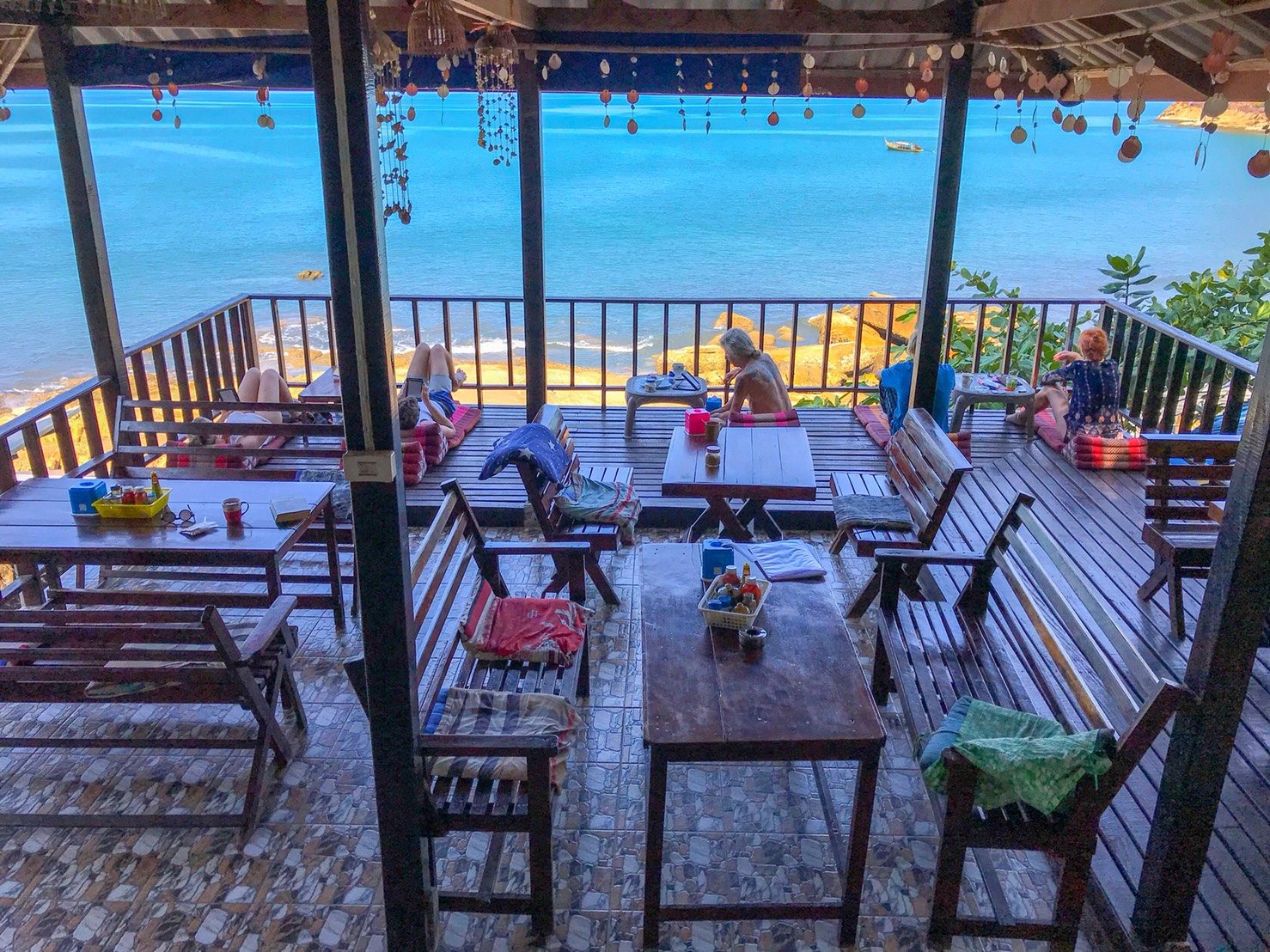 บรรยากาศร้านอาหาร จะเห็นวิวทะเล